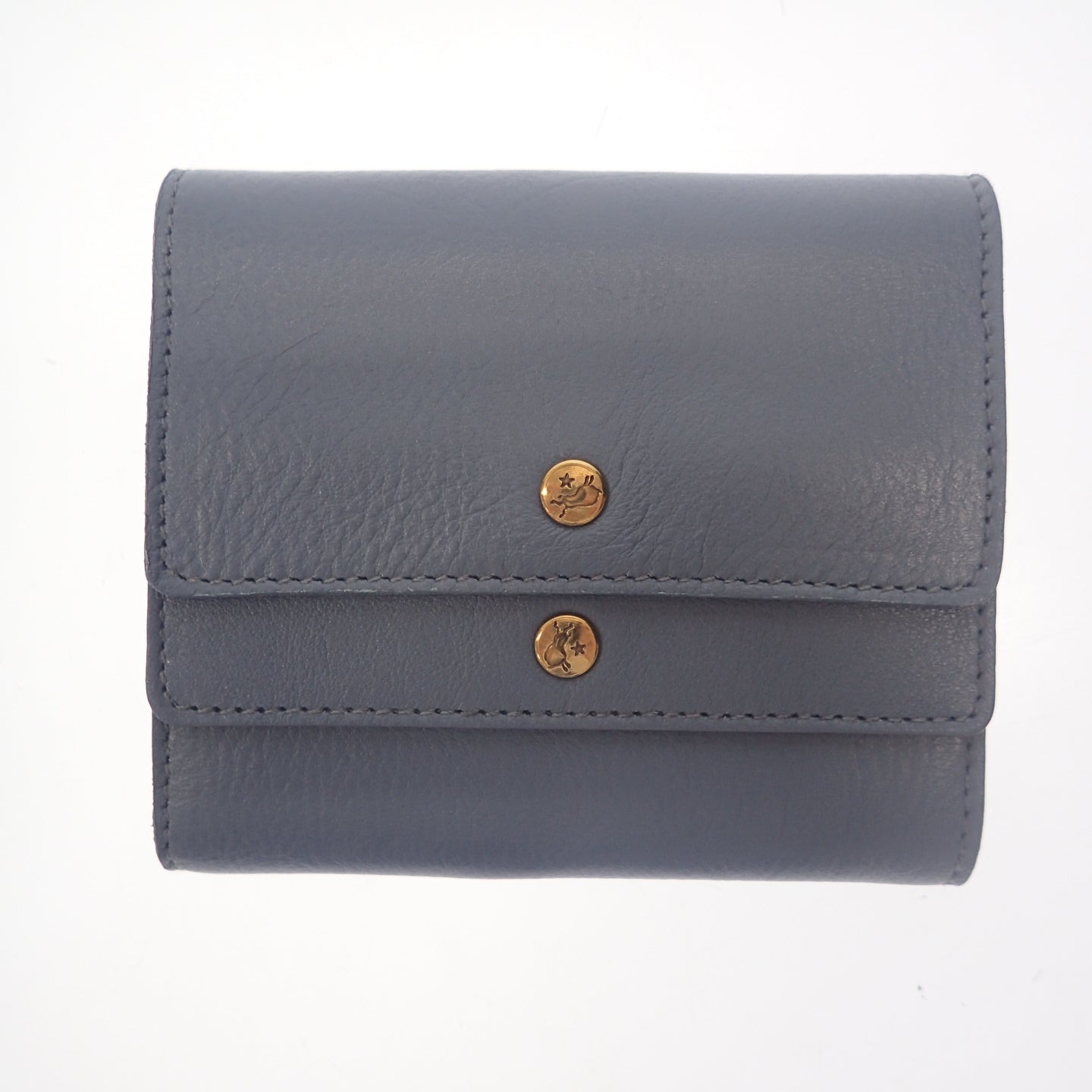 新品同様◆イルビゾンテ 三つ折り財布 レザー ブルー系 IL BISONTE【AFI16】