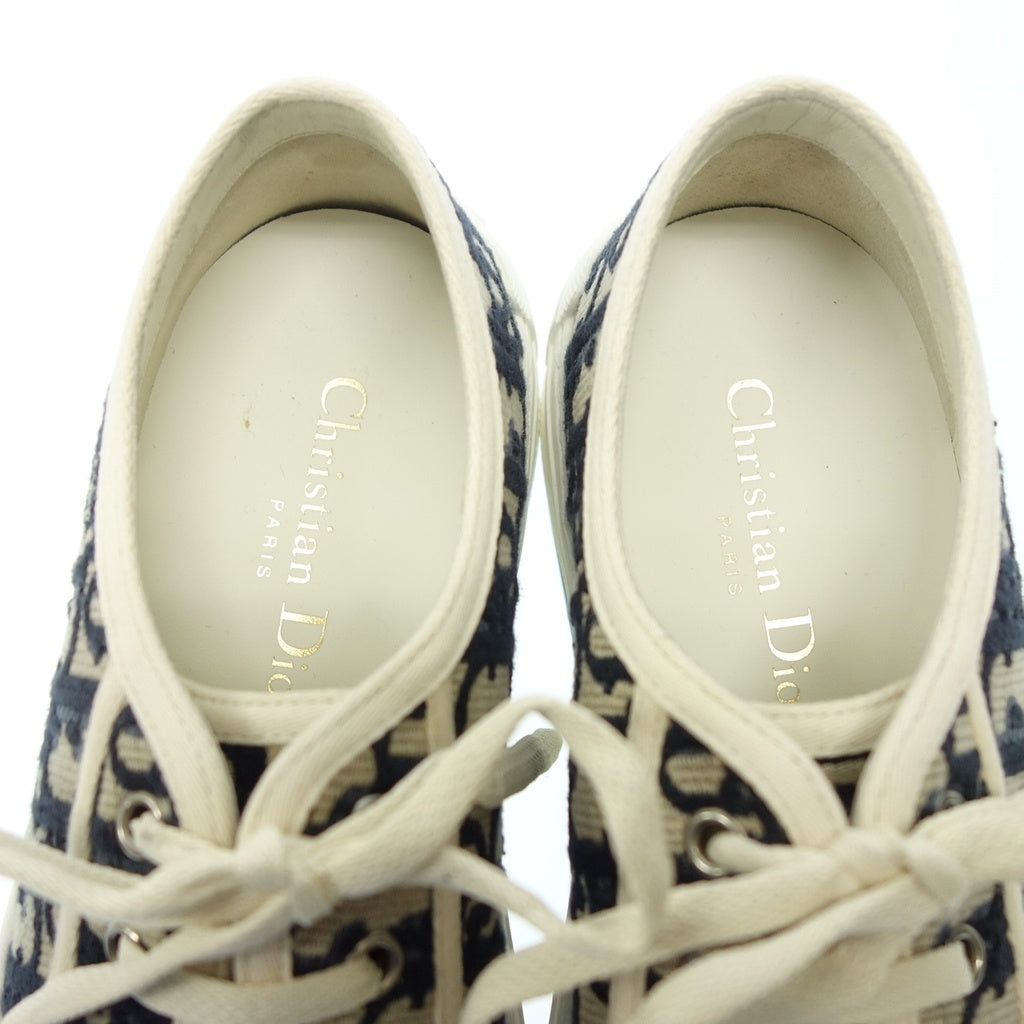 美品◆クリスチャンディオール レースアップスニーカー WALK'N'DIOR キャンバス オブリーク エンブロイダリー レディース ネイビー 36 DIOR【AFC2】
