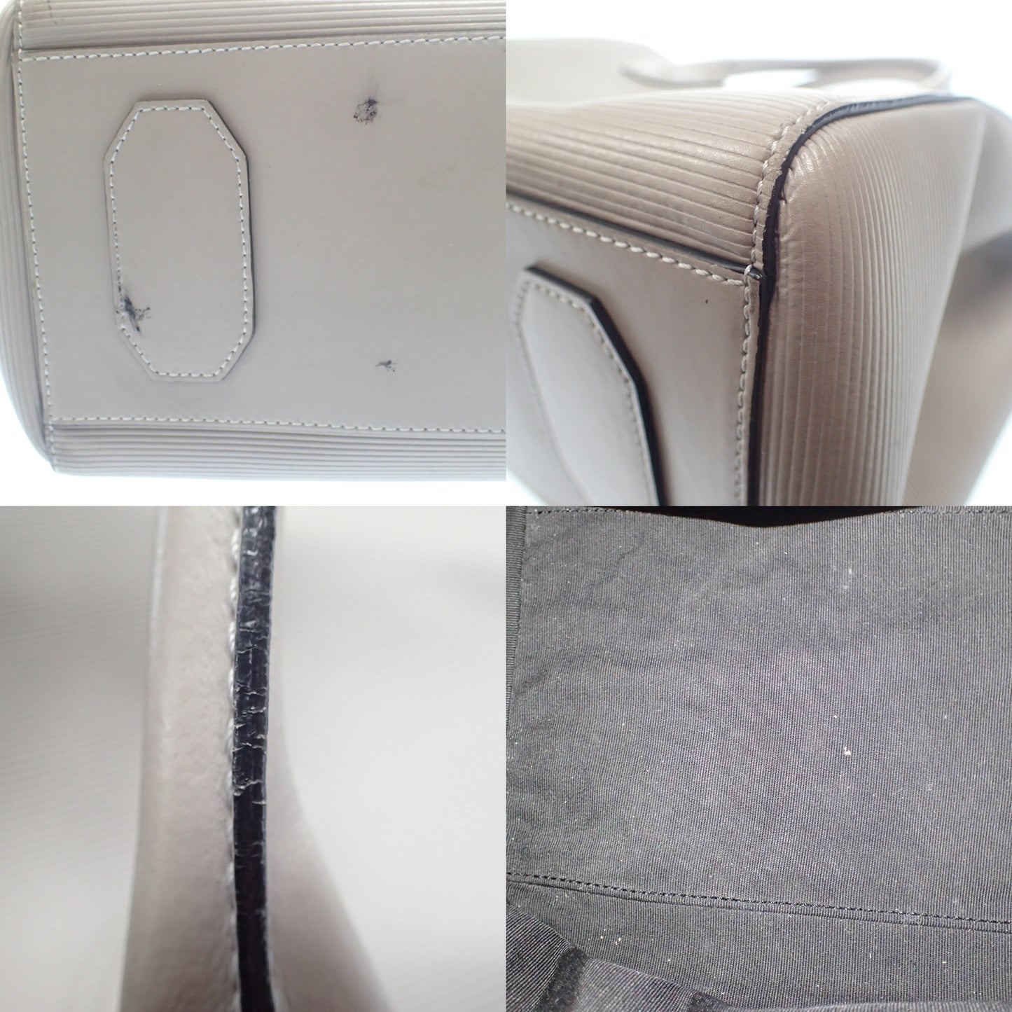 底面に傷が見られます。(画像参照) 持ち手にコバ割れが見られます。(画像参照) ショルダーストラップ欠損(画像参照) 内側状態ランク【B】 若干の汚れが見られます。(画像参照) |