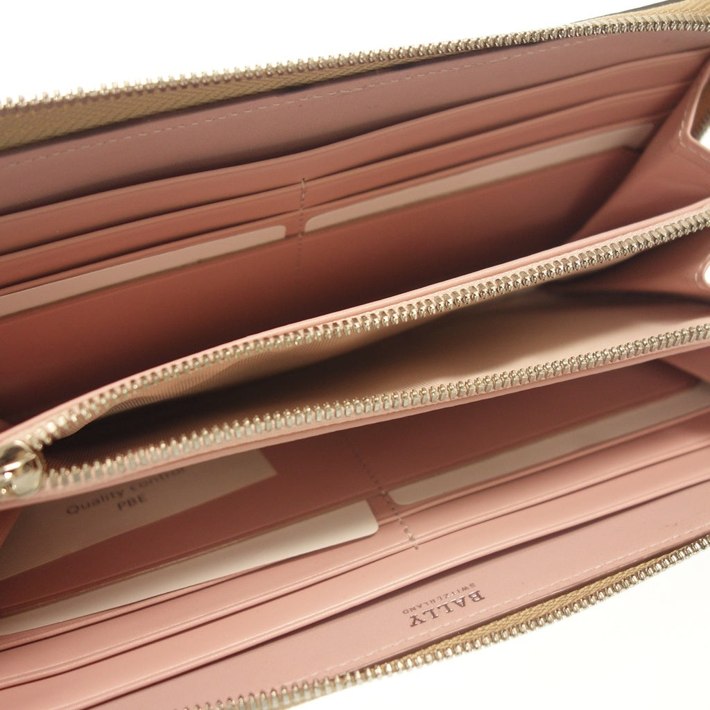 美品◆バリー 財布 ラウンドジップ カーフ エンボス ベージュ BALLY GROSVENOR【AFI18】