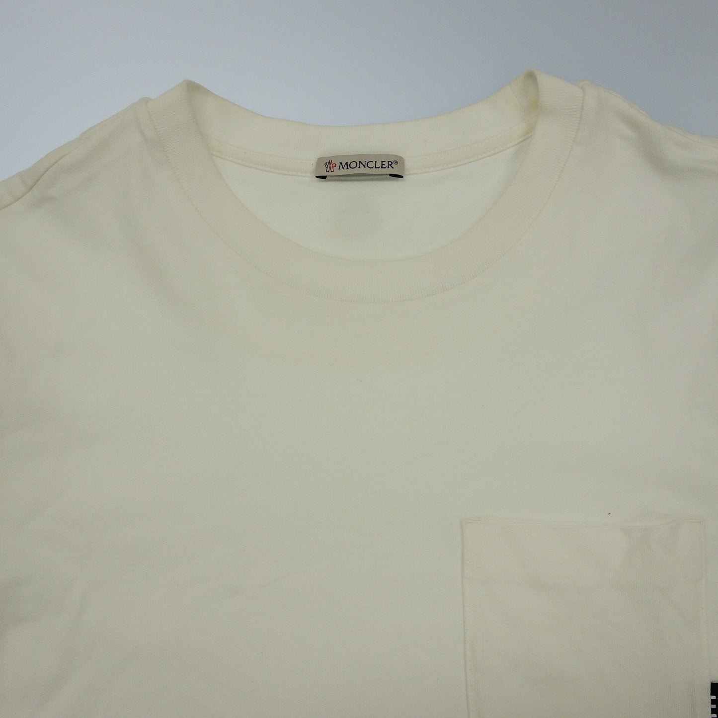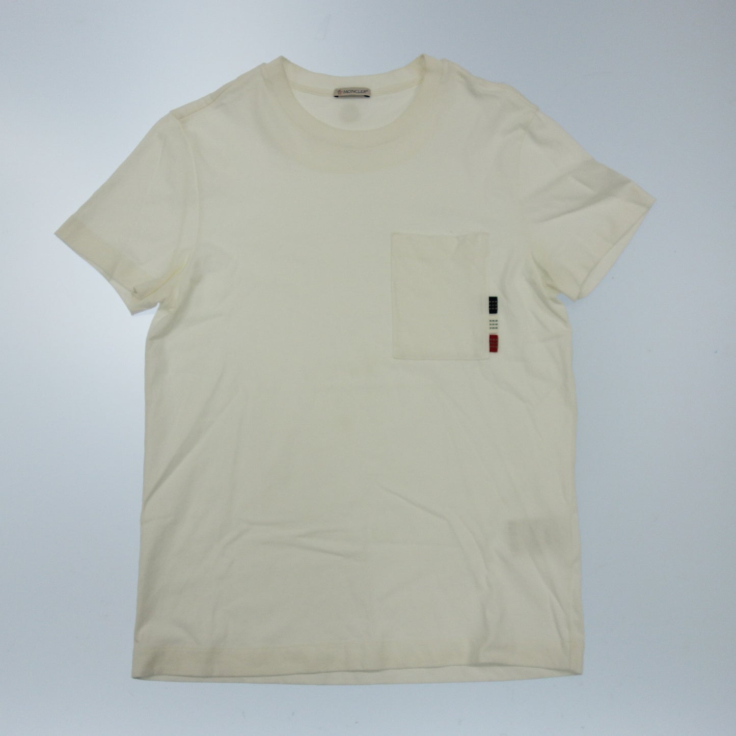 極美品◆モンクレール Tシャツ ポケット付 コットン 2019 メンズ サイズM ホワイト系 MONCLER MAGLIA【AFB3】