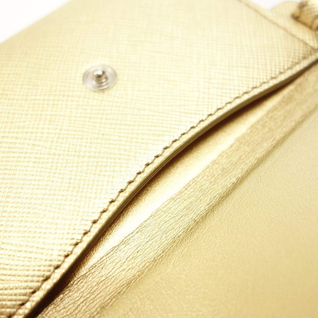 美品◆プラダ カードケース ゴールド サフィアーノ 1EN022 ストラップ付き PRADA【AFI10】
