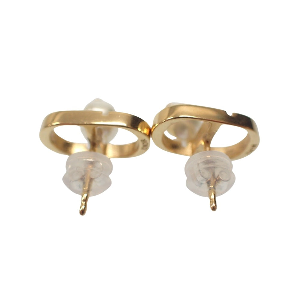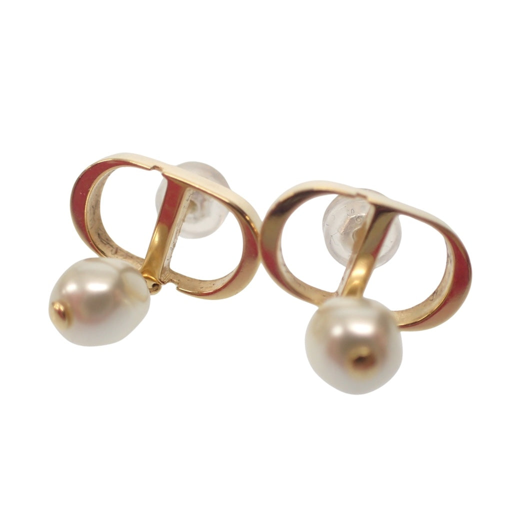 美品◆クリスチャン ディオール ピアス CDロゴ フェイクパール ゴールド系 Christian Dior【AFI12】