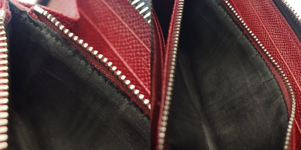 角に擦れが見られます(画像参照)。 内側状態ランク【B】 コインケース内に擦れ汚れと僅かなほつれが見られるほか、全体的に擦れが見られます(画像参照)。 |
