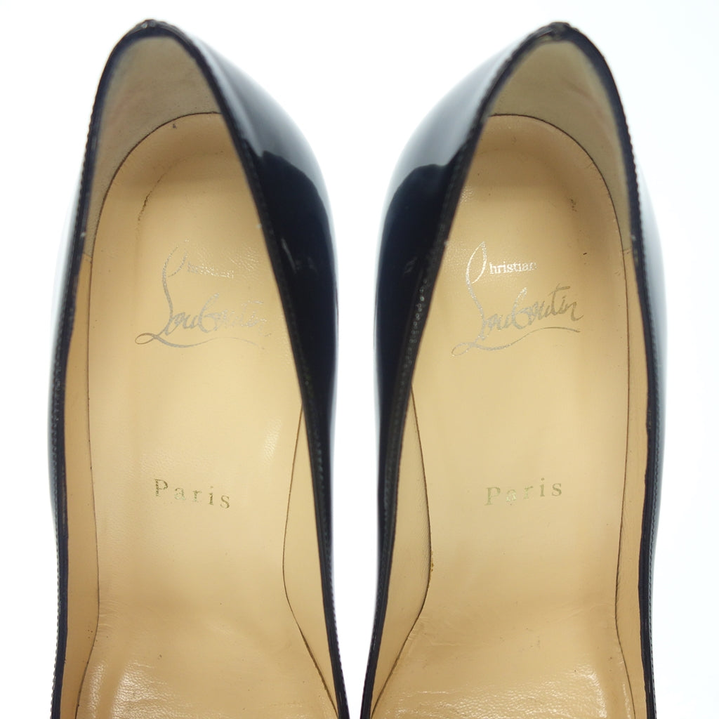 美品◆クリスチャンルブタン パンプス ピンヒール エナメル レディース サイズ37 ブラック CHRISTIAN LOUBOUTIN【AFD1】