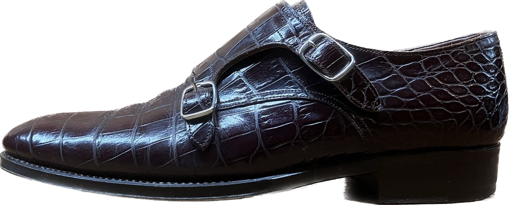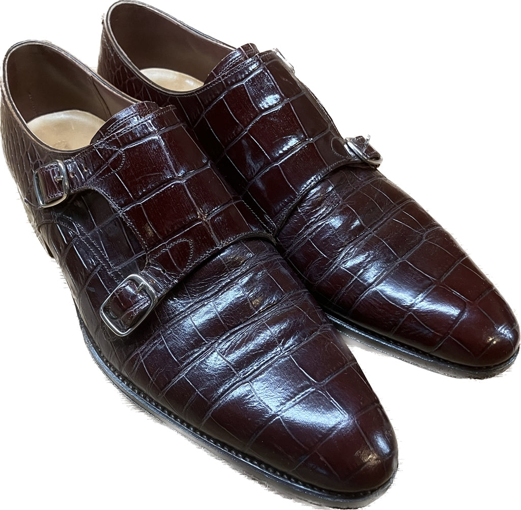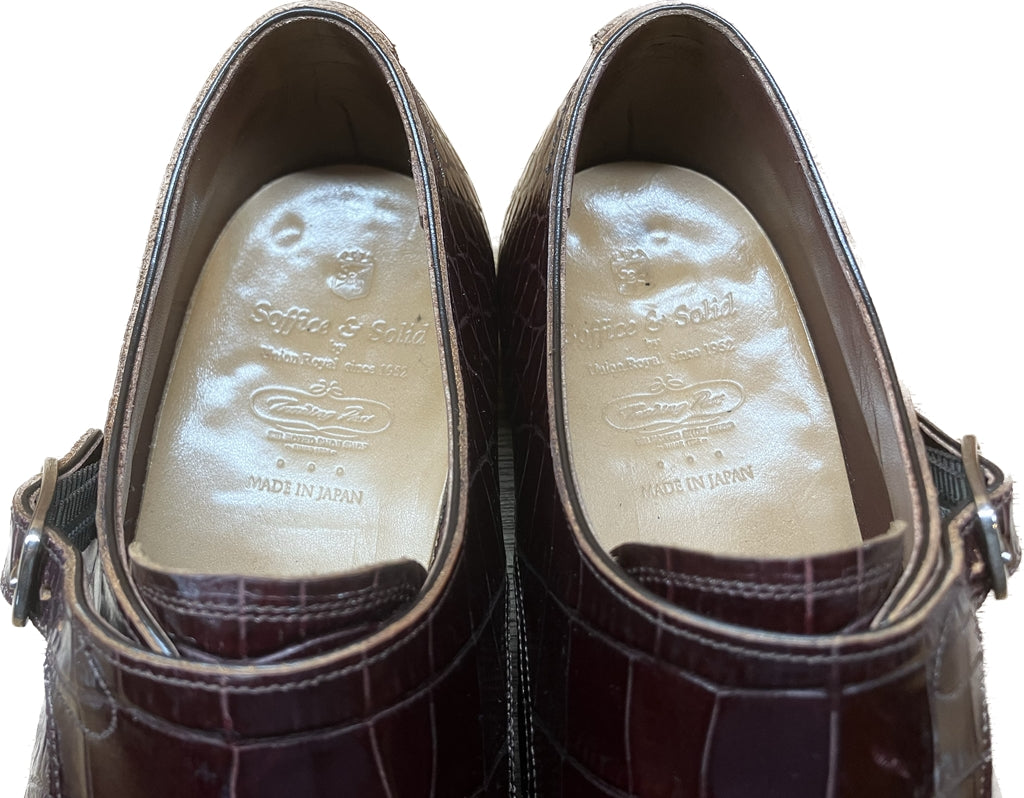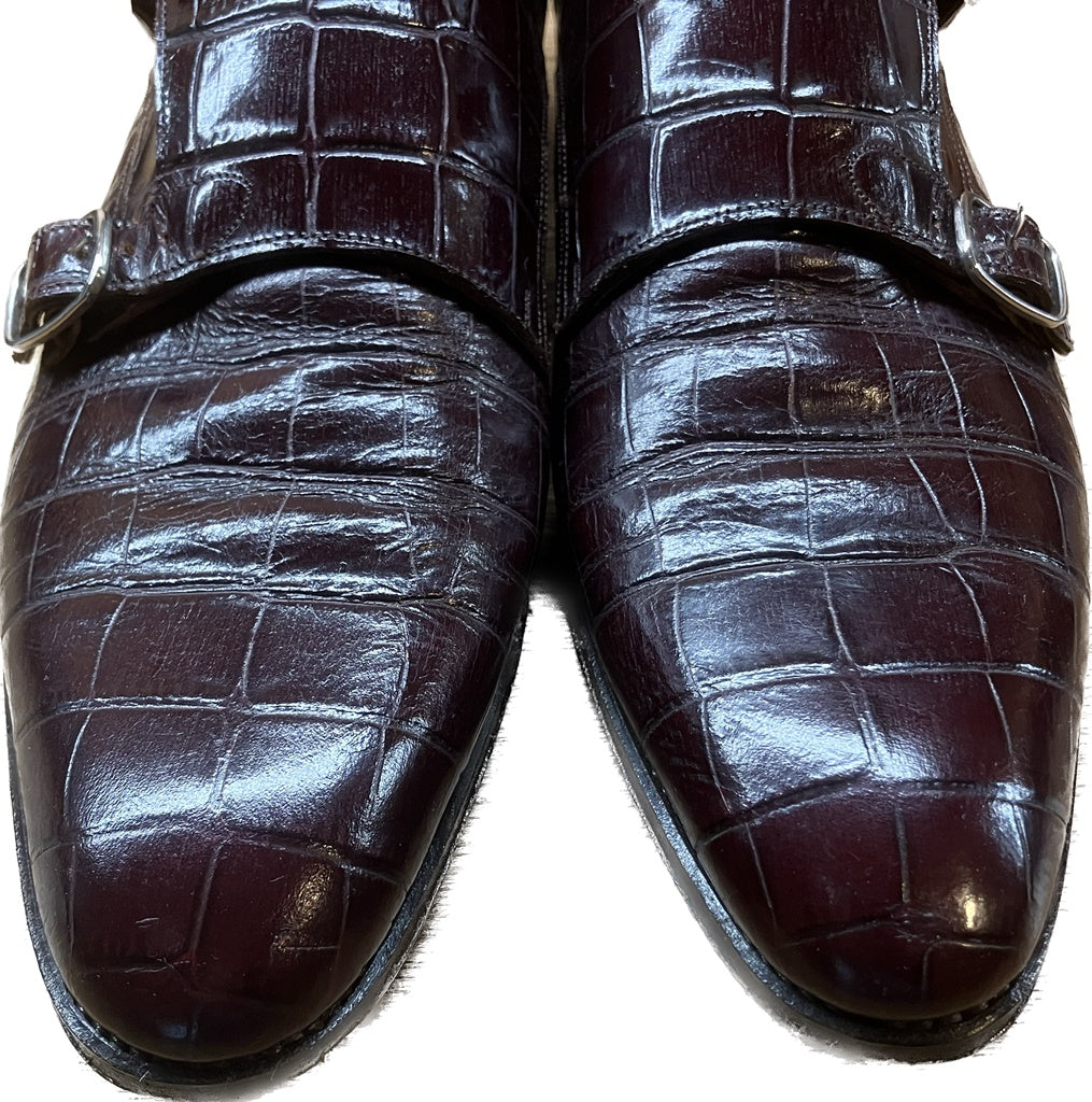美品◆トレーディングポスト レザーシューズ ダブルモンク クロコ型押し 赤茶系 7 Trading Post