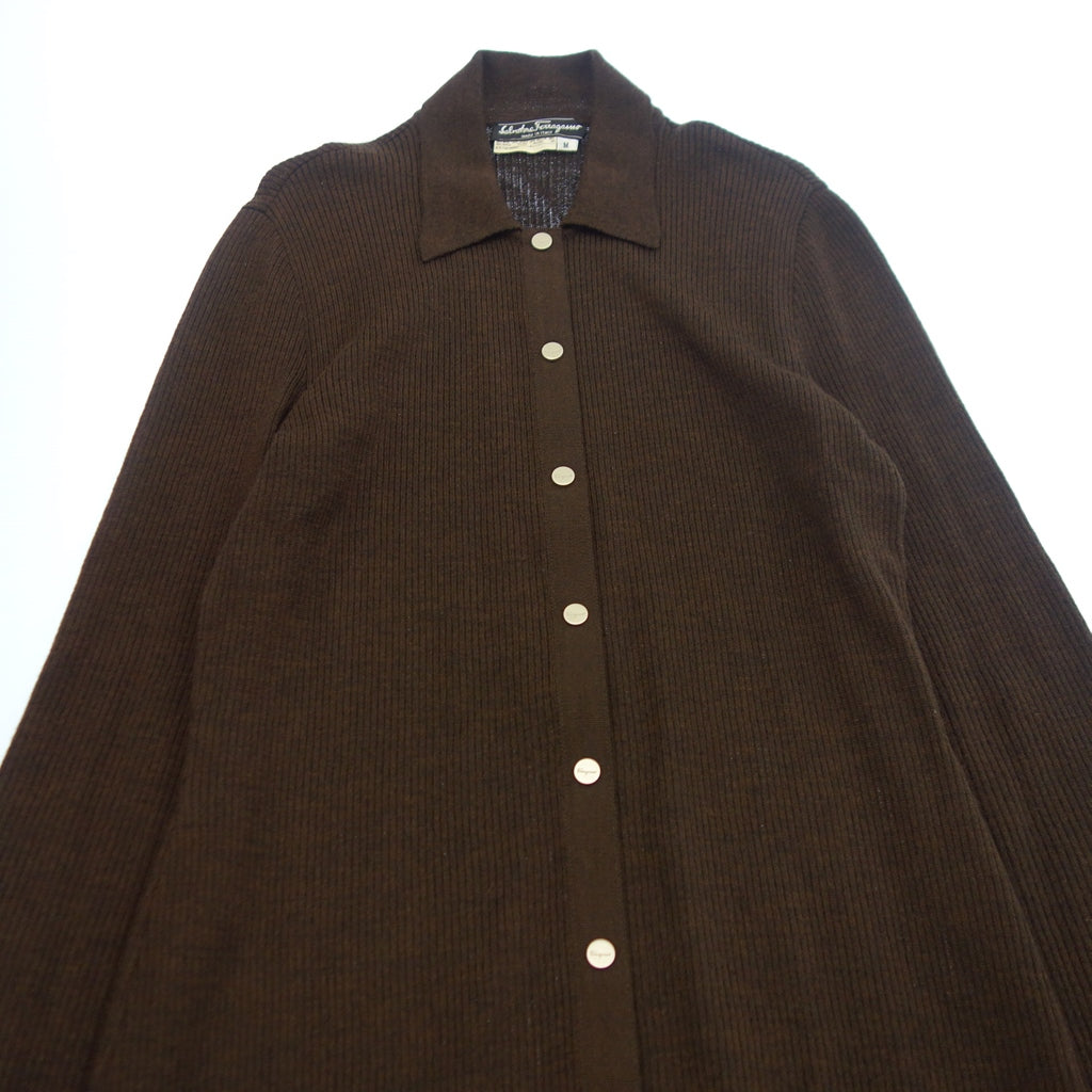 美品◆サルバトーレフェラガモ ロングニットカーディガン レディース ブラウン M Salvatore Ferragamo【AFB8】