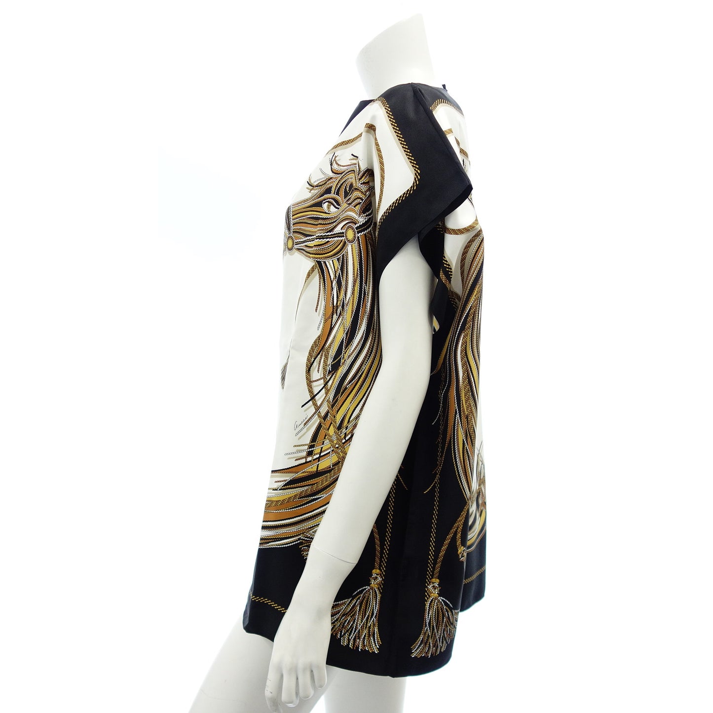 グッチ シルク トップス プルオーバー ポンチョ 総柄 馬柄 黒系 294422 箱付き GUCCI【AFB17】【中古】