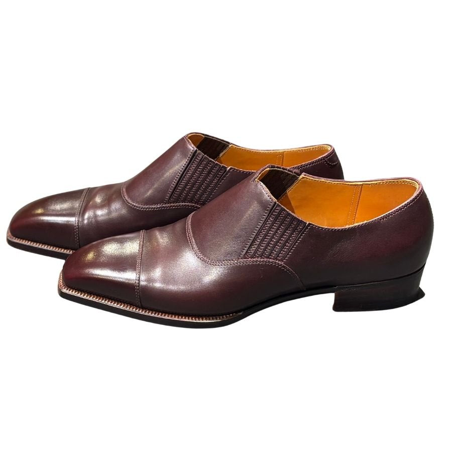 ヒロヤナギマチ レザーシューズ サイドエラスティック オーダー品 E014DBG 2015年製 ブラウン サイズUK5.5相当 HIRO YANAGIMACHI ビジネスシューズ 約24.0cm【LA】【中古】