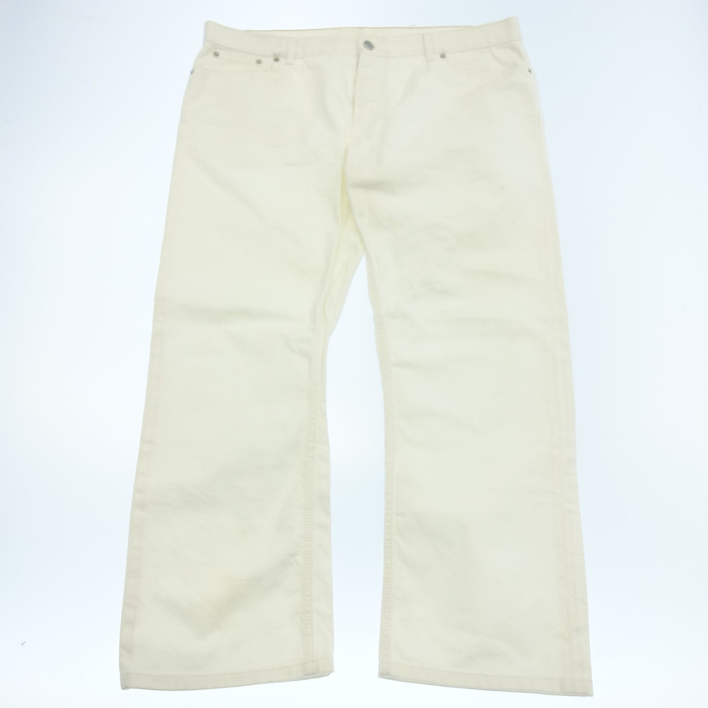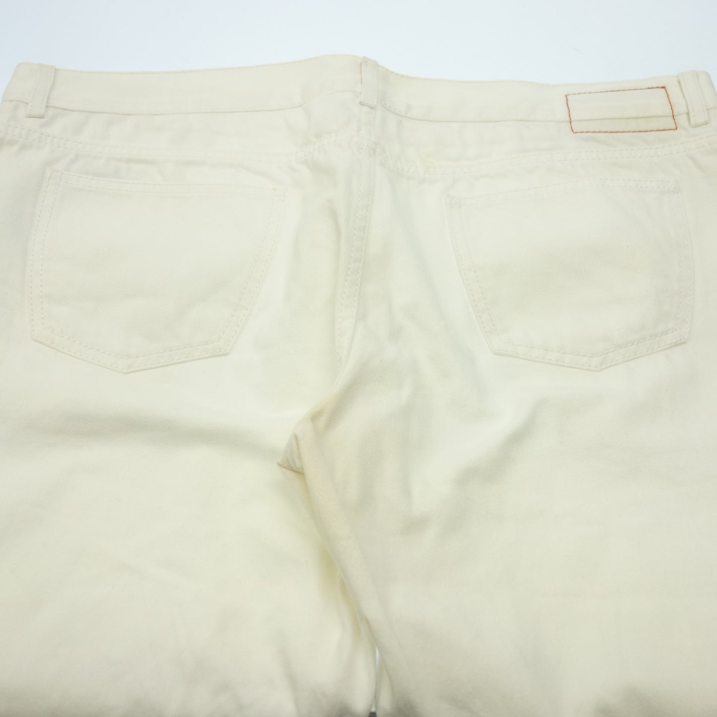 中古◆エルメス デニムパンツ コットン レザーパッチ セリエボタン サイズ52 メンズ 白 HERMES【AFB35】