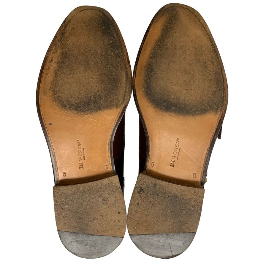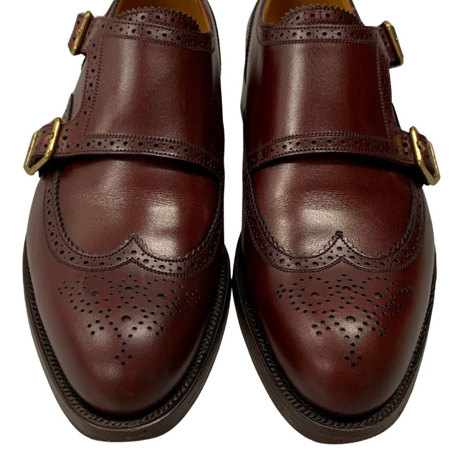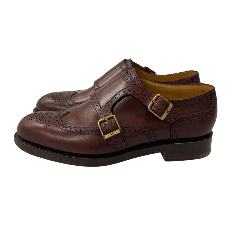 ジェイエムウエストン ダブルモンク 334 ウイングチップ カーフ サイズ5 メンズ バーガンディ J.M.WESTON ビジネスシューズ 約23.5cm【LA】【中古】