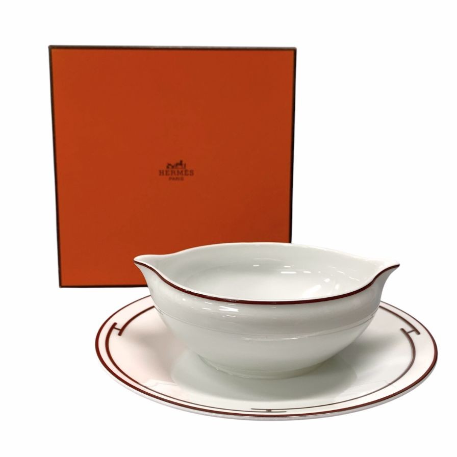 エルメス リズムレッド スープ皿 ホワイト HERMES【AFI28】【中古】