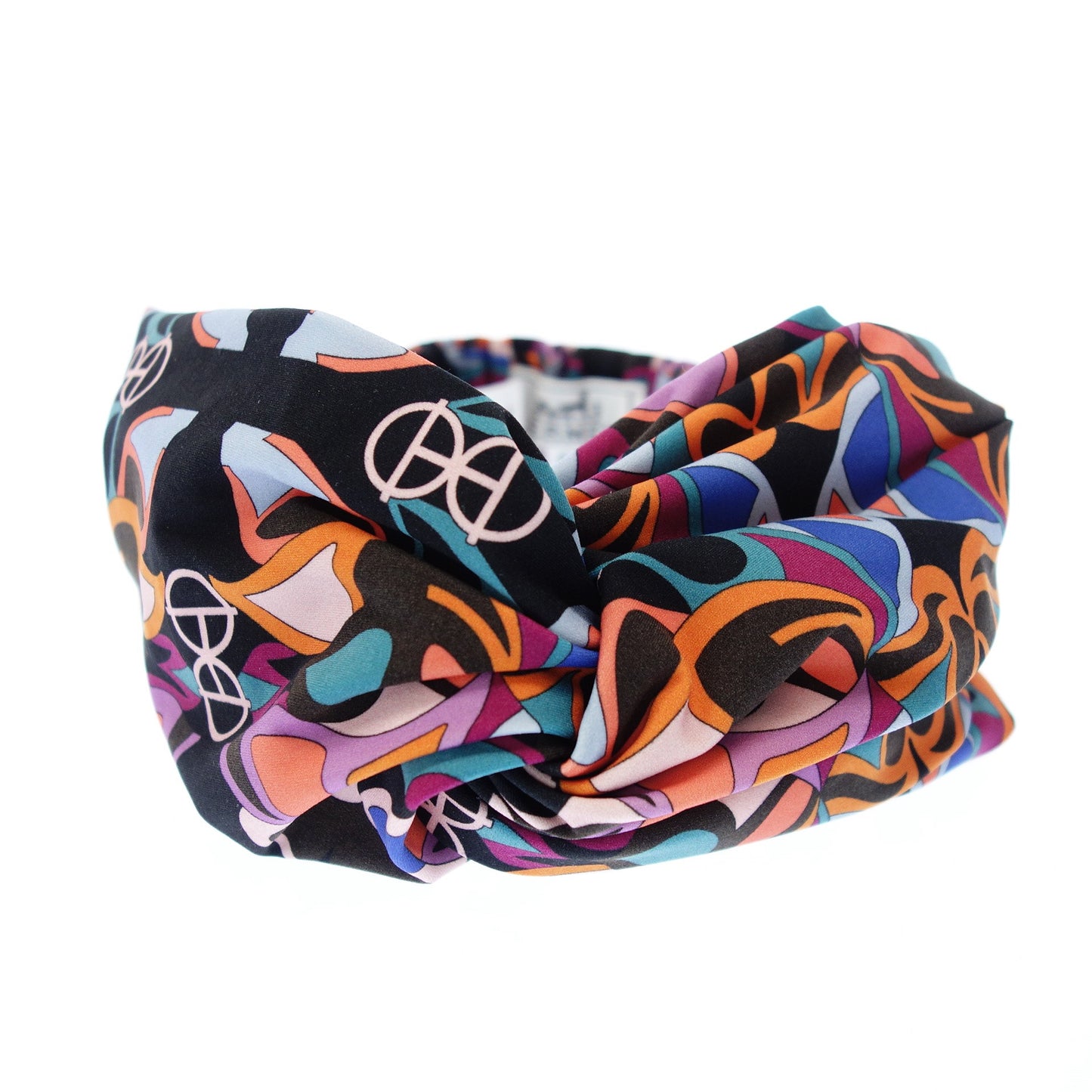 美品◆エルメス 総柄 ヘアバンド 黒系 HERMES【AFI2】