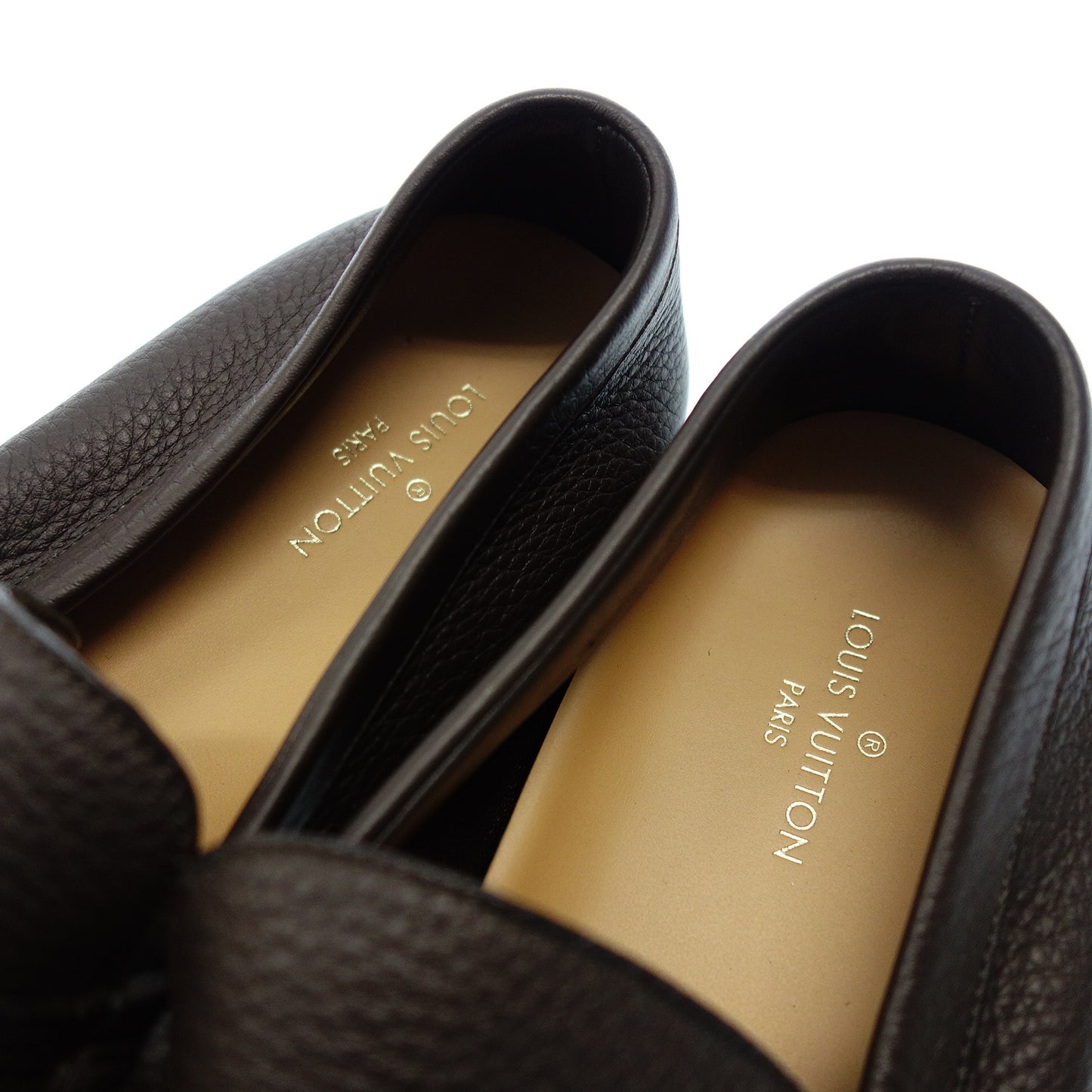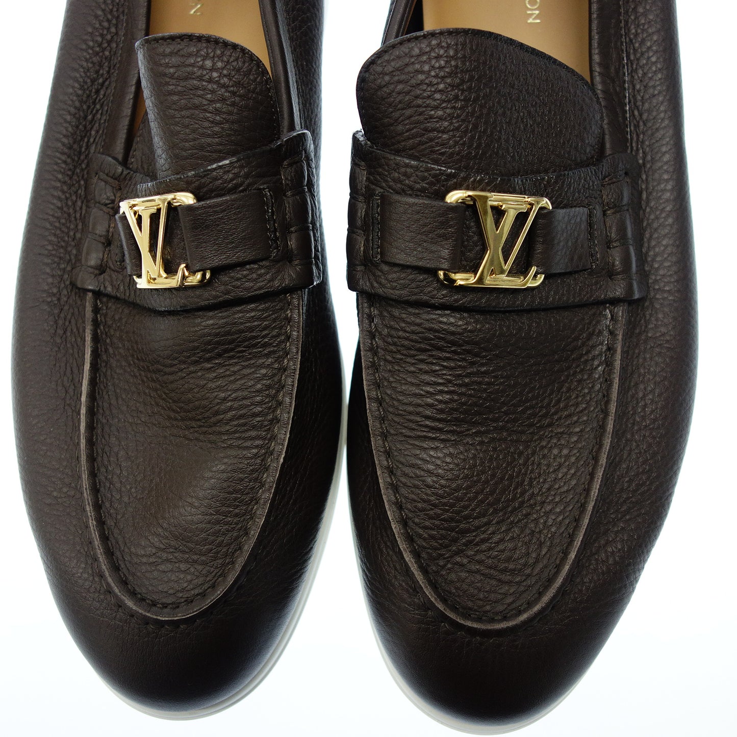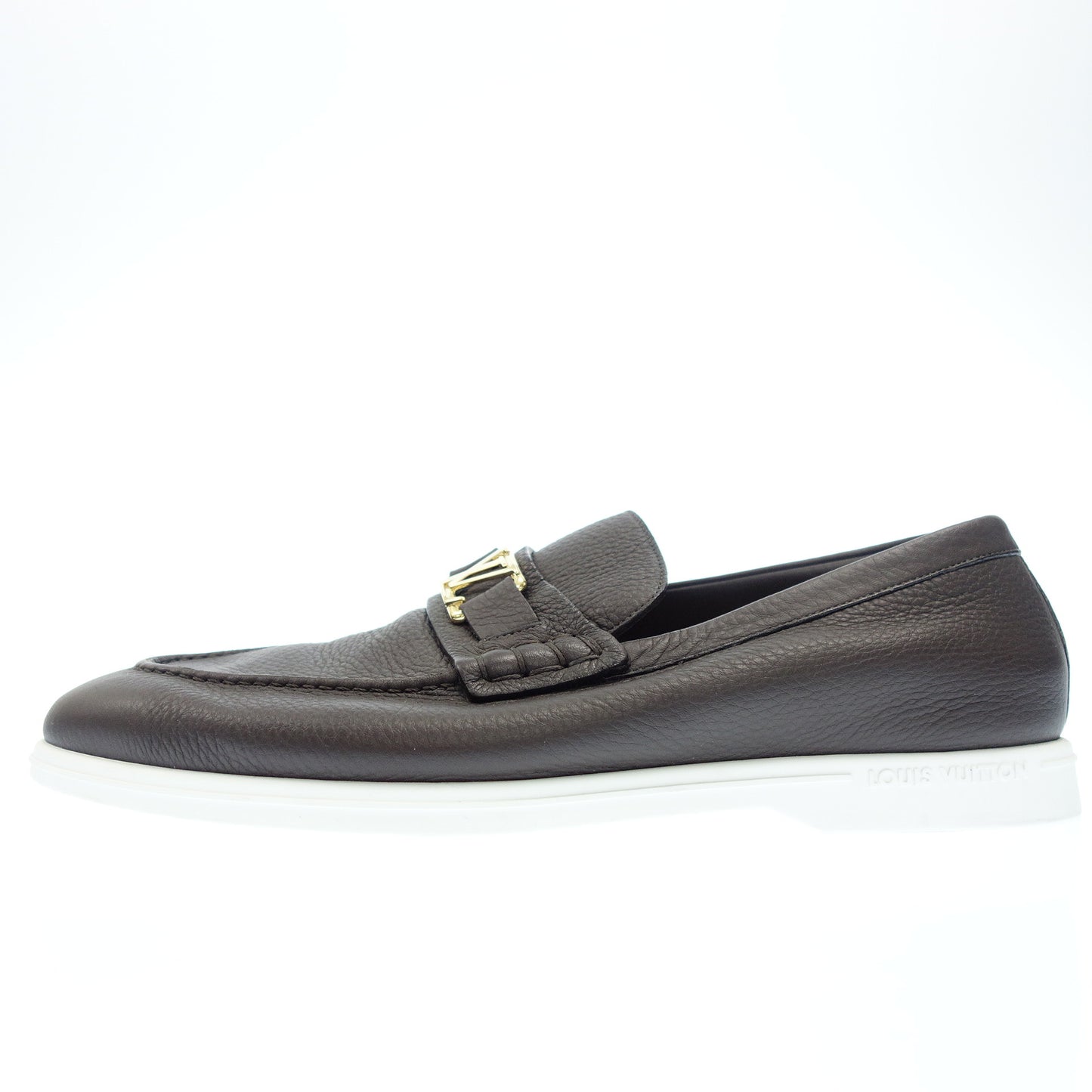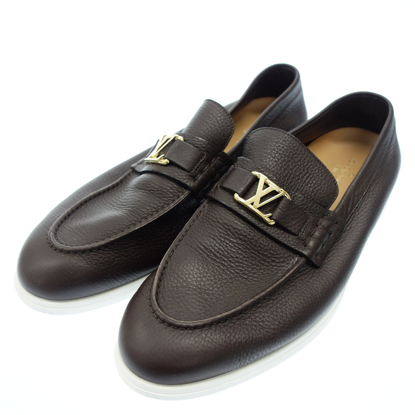 極美品◆ルイヴィトン レザーローファー LV金具 カーフスキン メンズ 8 茶 LOUIS VUITTON【AFC44】