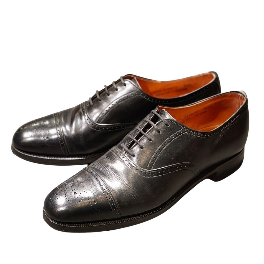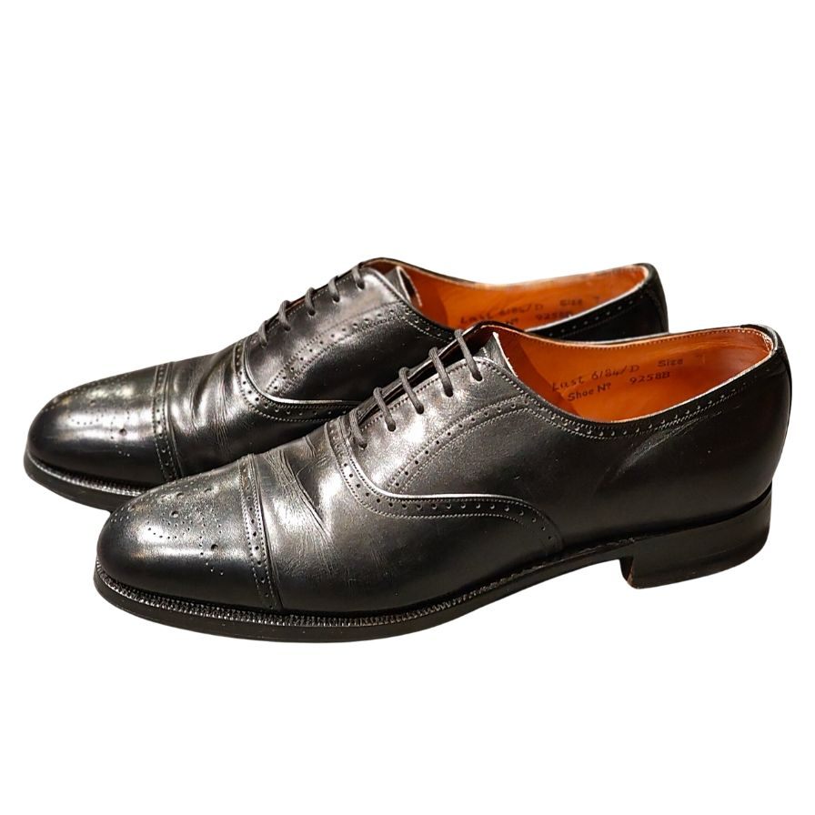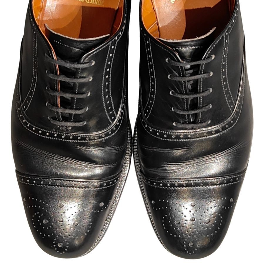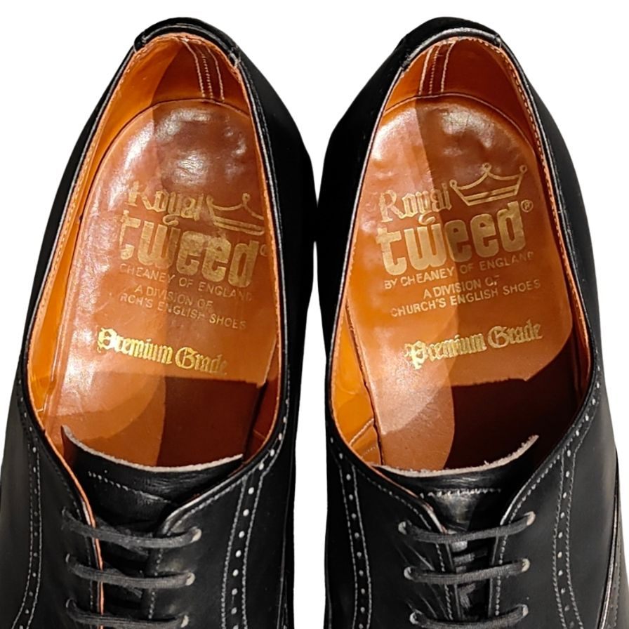 ロイヤルツイード レザーシューズ チーニー製 セミブローグ ブラック メンズ サイズ7 Royal Tweed ビジネスシューズ 約26.0cm【LA】【中古】