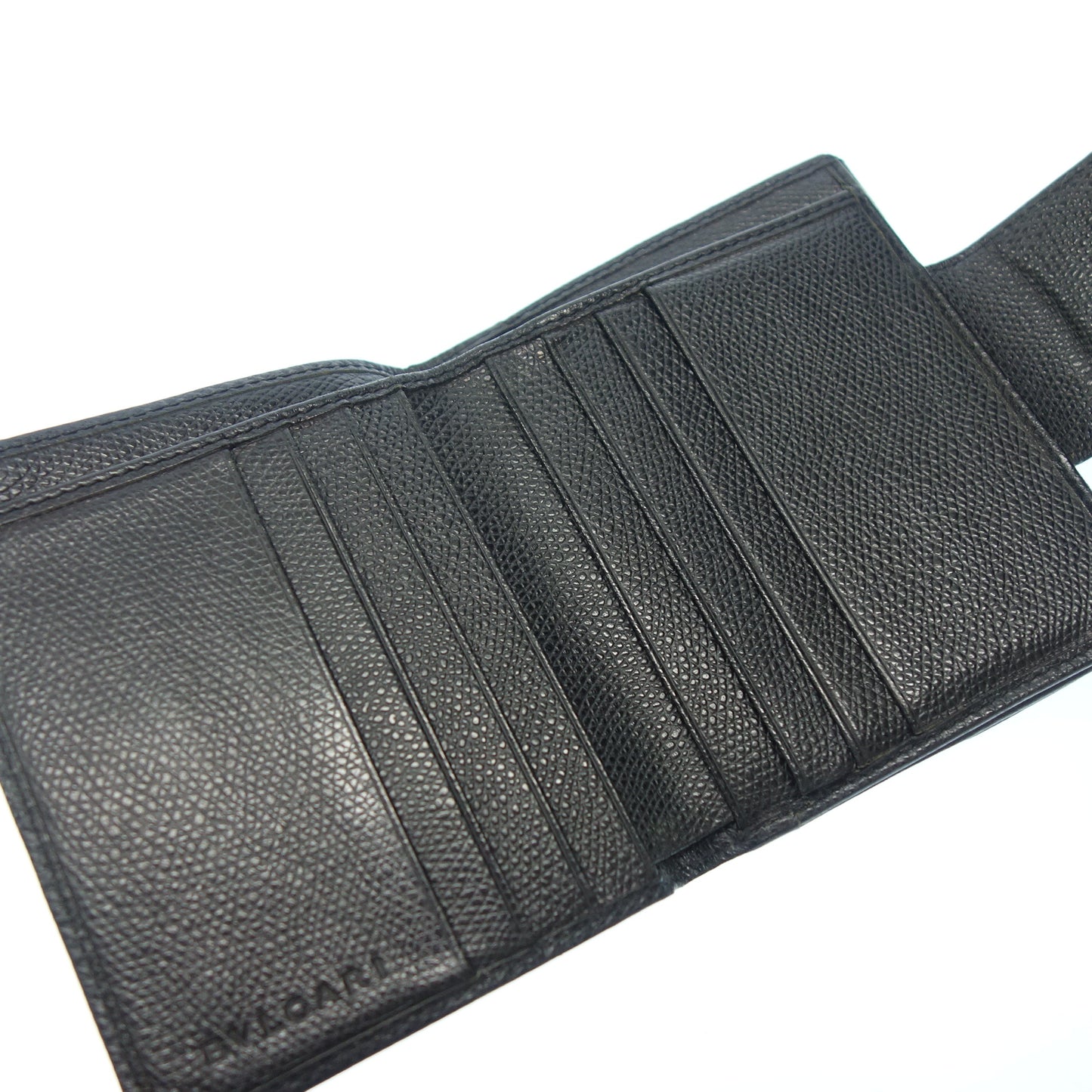ブルガリ 二つ折り財布 Wホック レザー 黒 BVLGARI【AFI14】【中古】