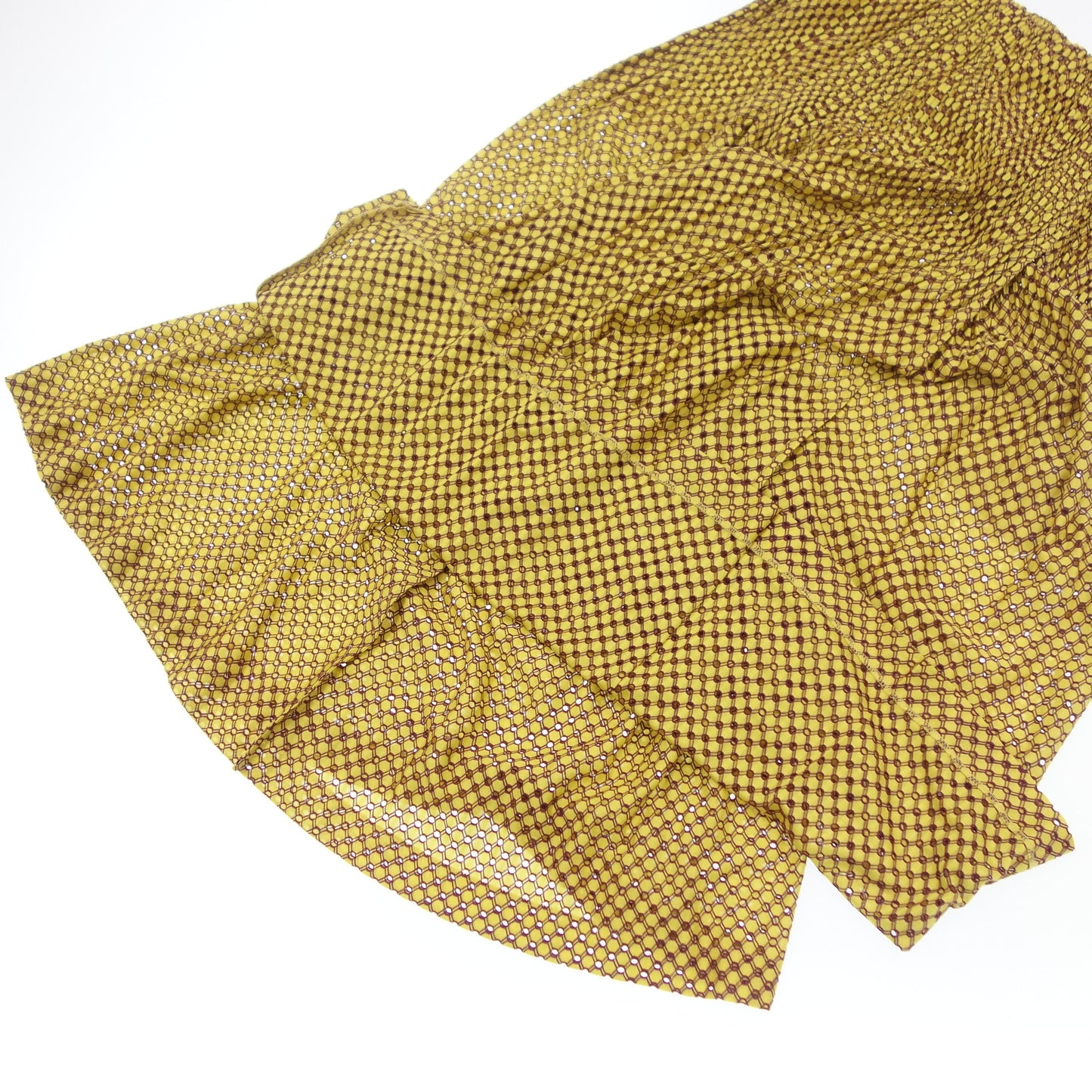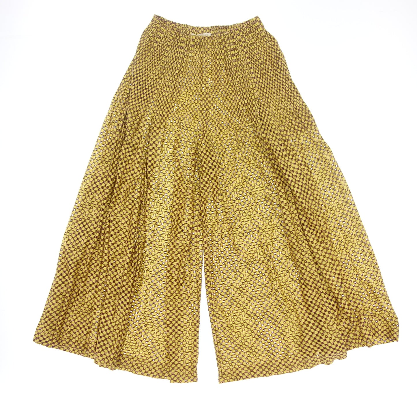 美品◆プリーツプリーズ イッセイミヤケ パンツ 総柄 PP83-JF523 ペチコート付 レディース 3 黄系 PLEATS PLEASE ISSEY MIYAKE【AFB34】