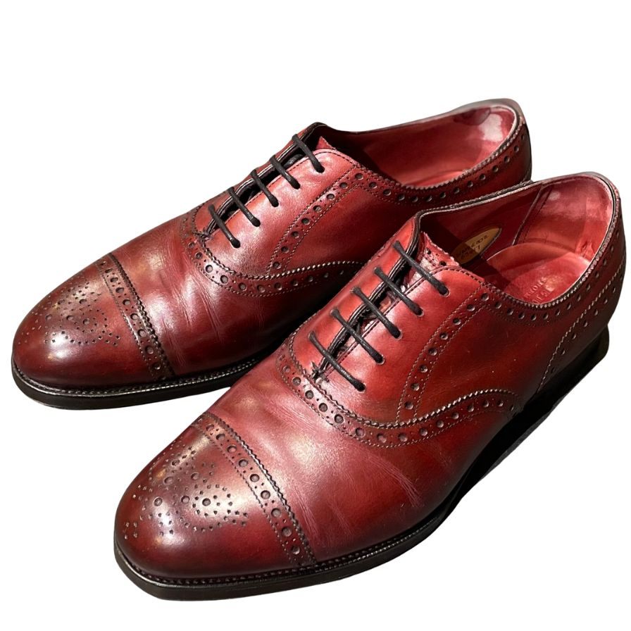 エドワードグリーン レザーシューズ セミブローグ バーガンディ 202ラスト サイズUK6E メンズ ブラック EDWARD GREEN CADOGAN ビジネスシューズ 約25.0cm【LA】【中古】