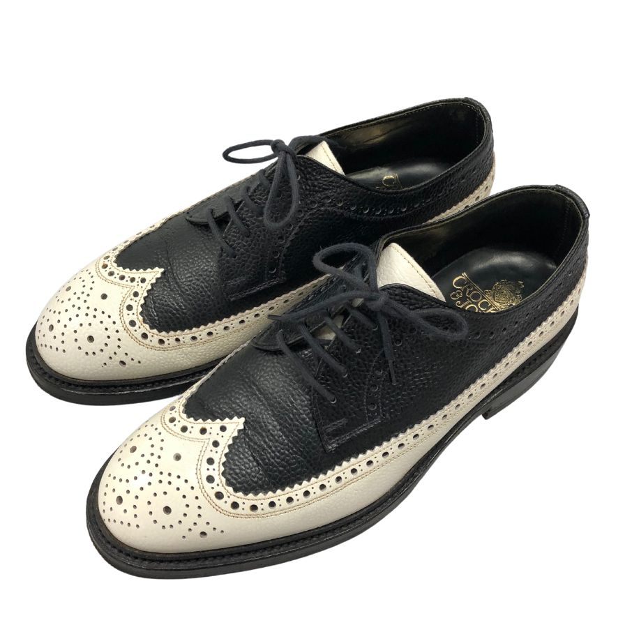 クロケット&ジョーンズ レザーシューズ フルブローグ チェビオット グレインレザー ネイビー ホワイト サイズ5.5E メンズ CROCKETT&JONES CHEVIOT 約24.5cm【LA】【中古】