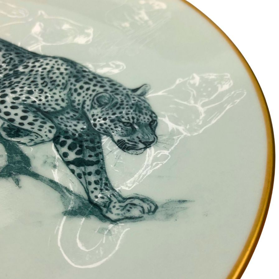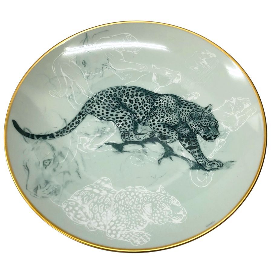 エルメス プレート 赤道直下のスケッチ ヒョウ柄 約21㎝ ブルー HERMES【AFI28】【中古】