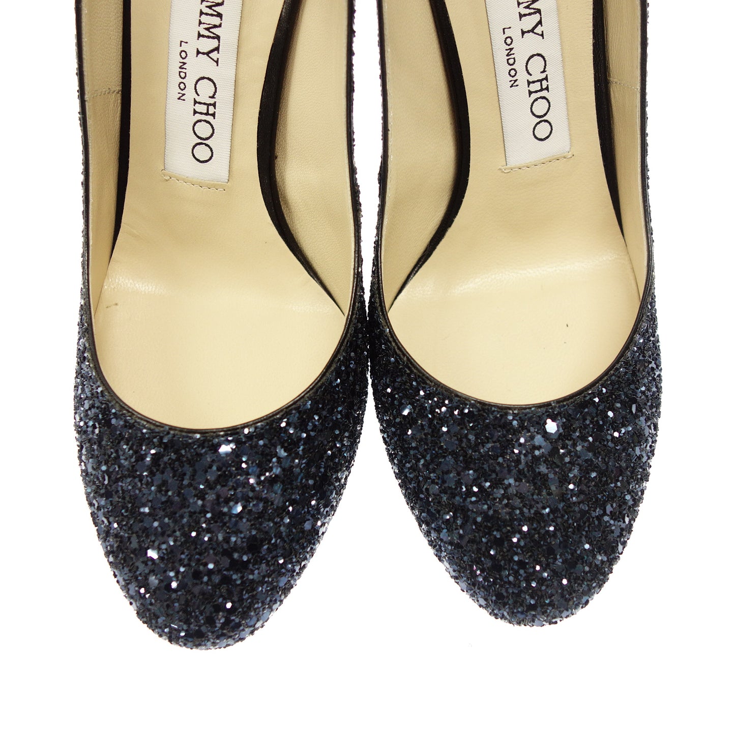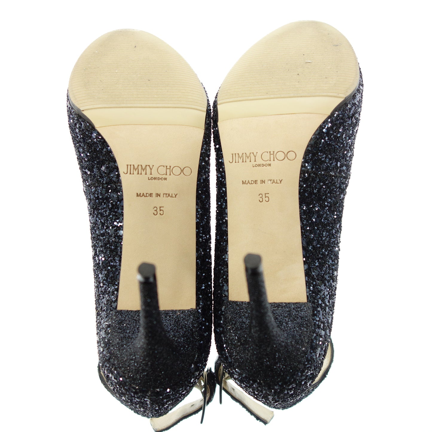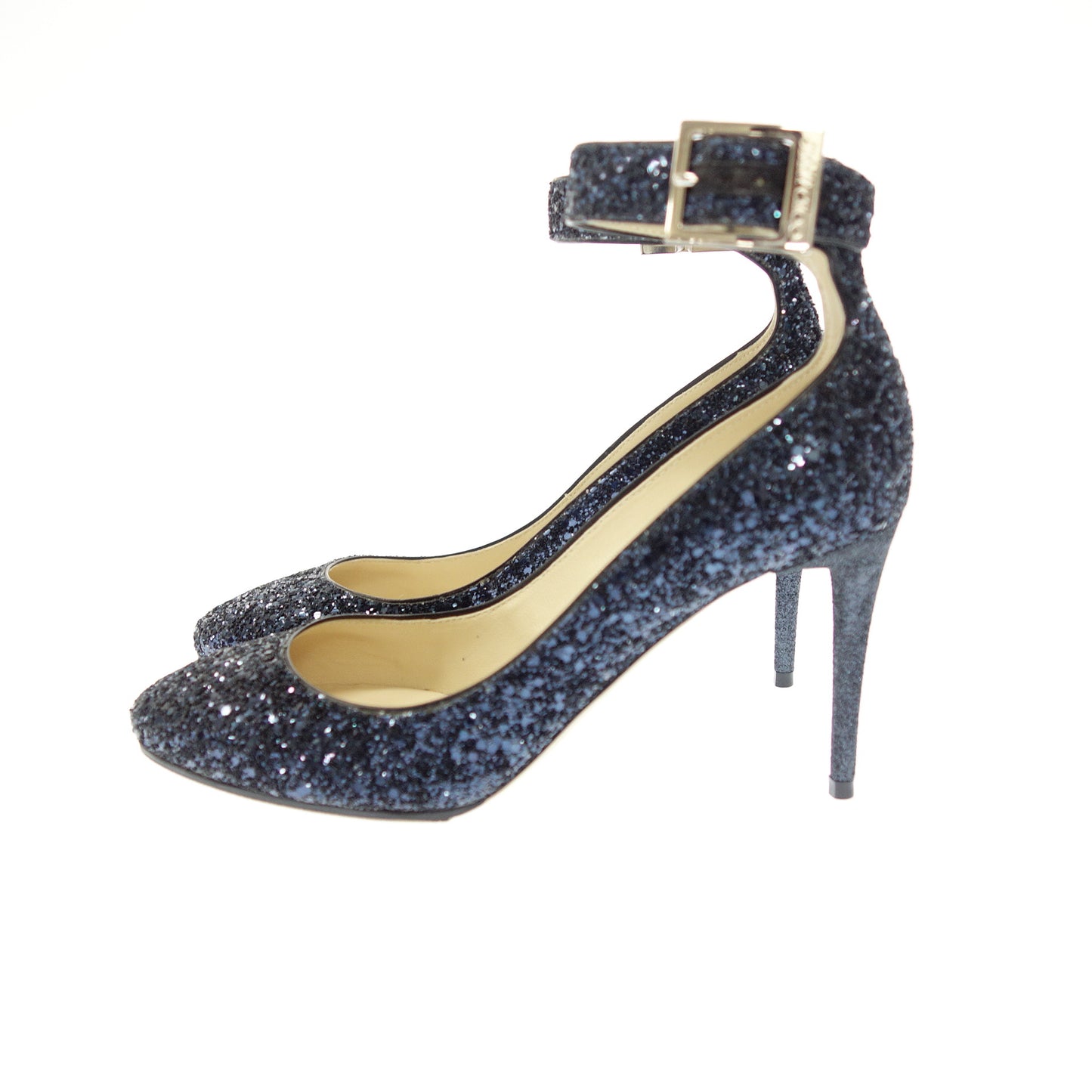 極美品◆ジミーチュウ レザーパンプス ベルトデザイン グリッター ラメ レディース ネイビー サイズ35 JIMMY CHOO【AFD8】