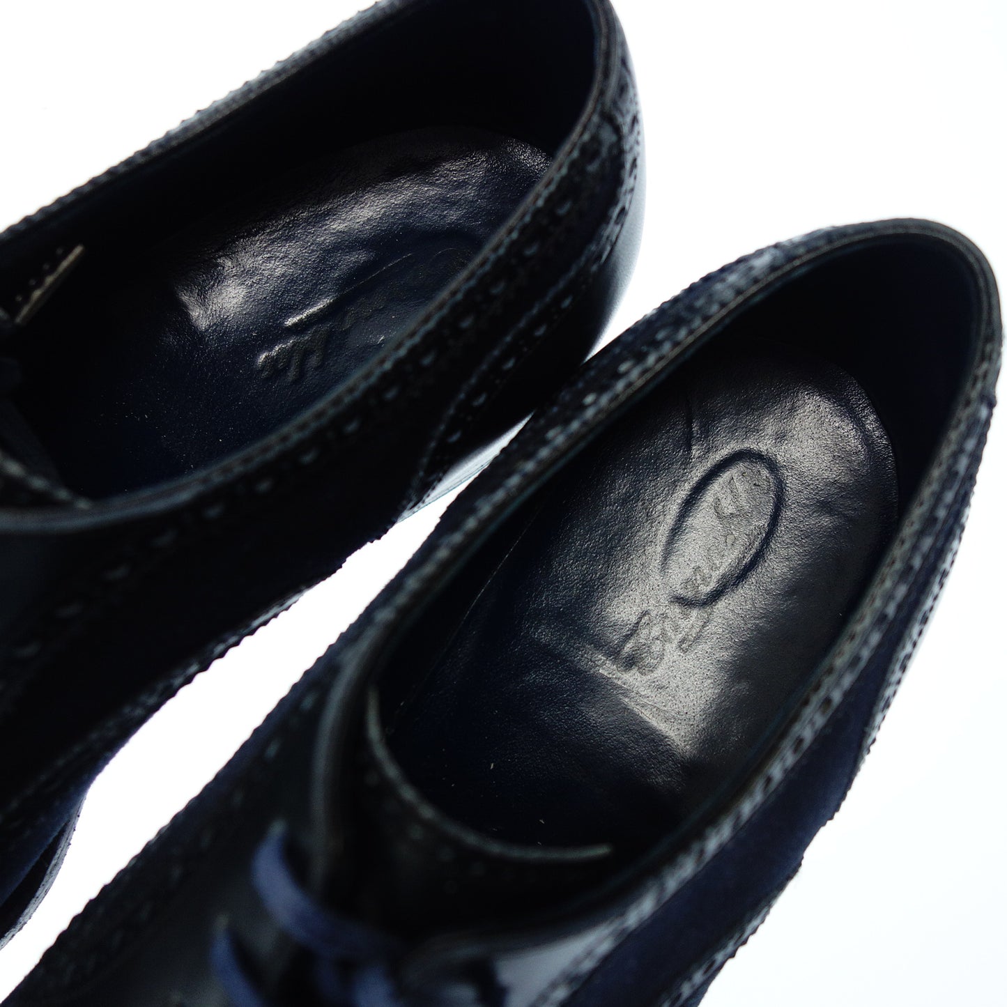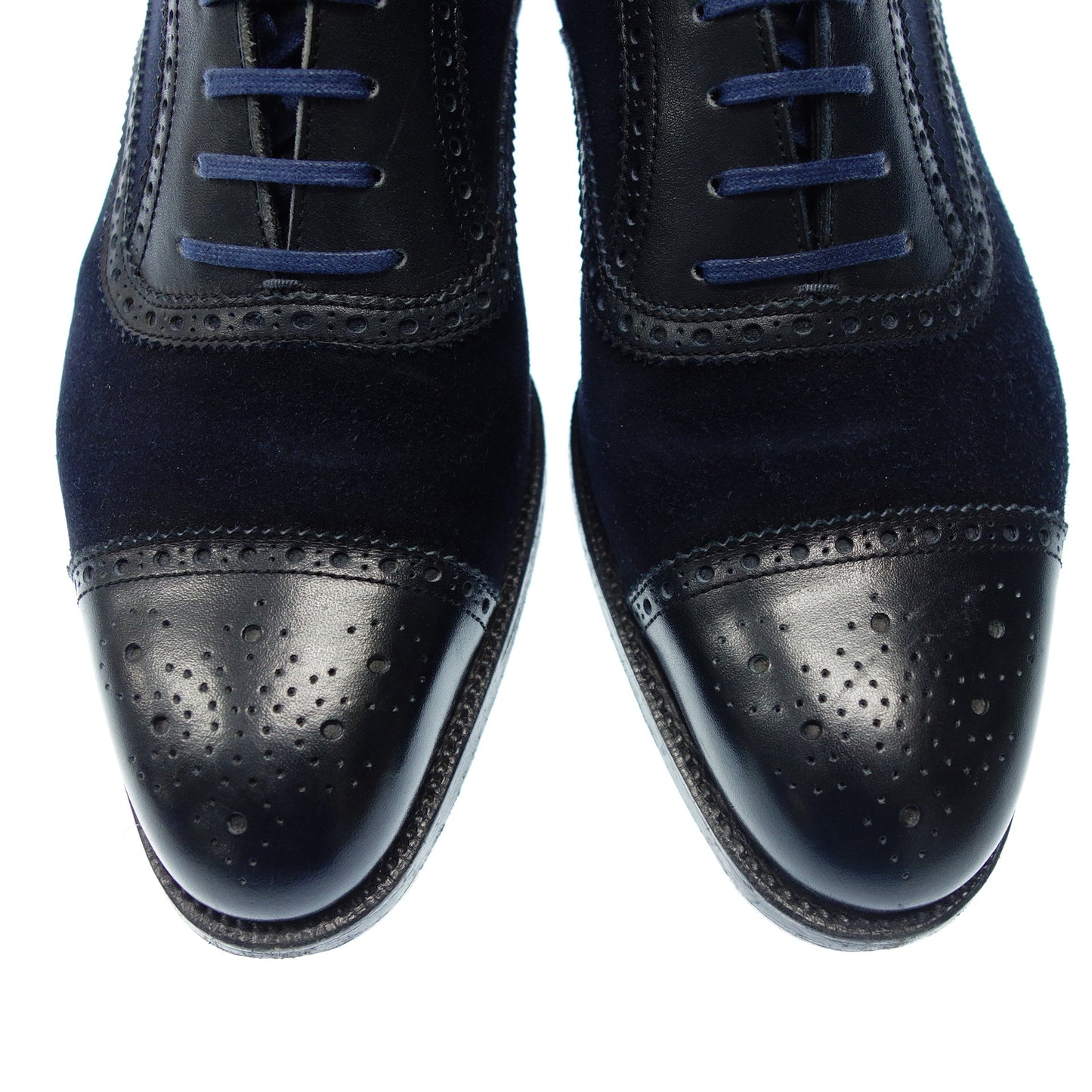 コルノ ブルゥ ビスポーク ストレートチップ 内羽根シューズ レザー&スエード コンビ メンズ 紺×黒 Corno blu【AFC51】【中古】