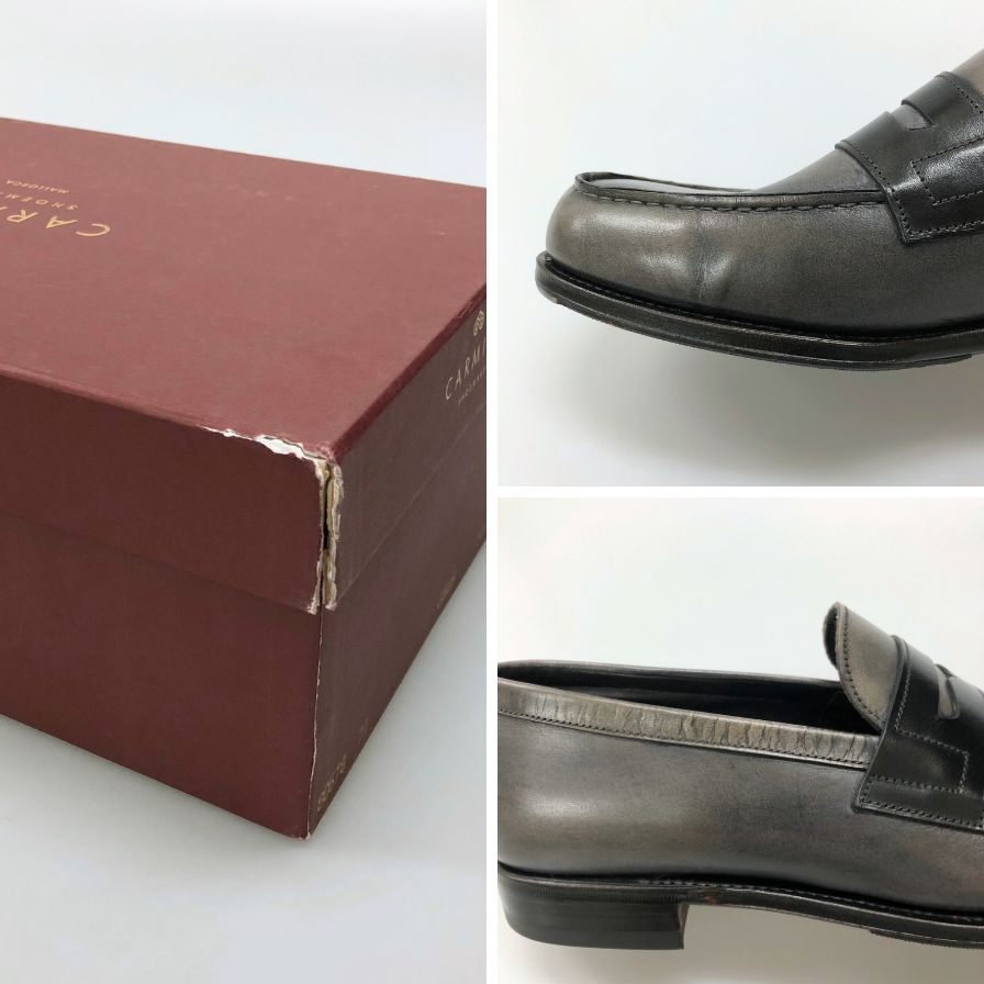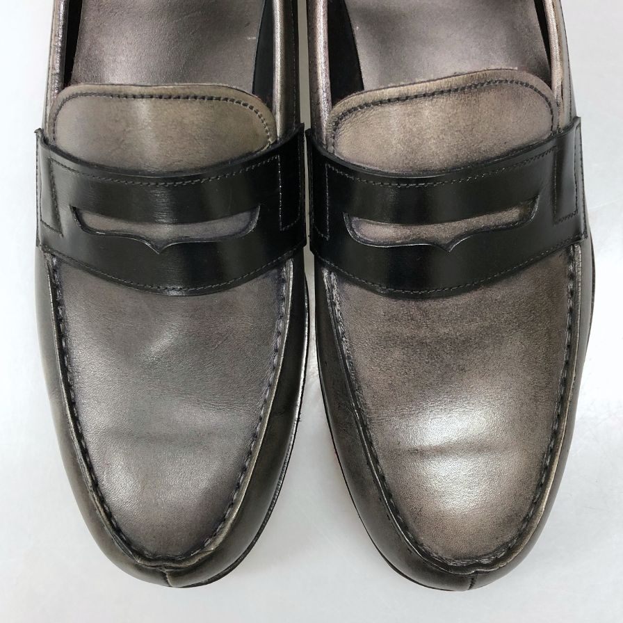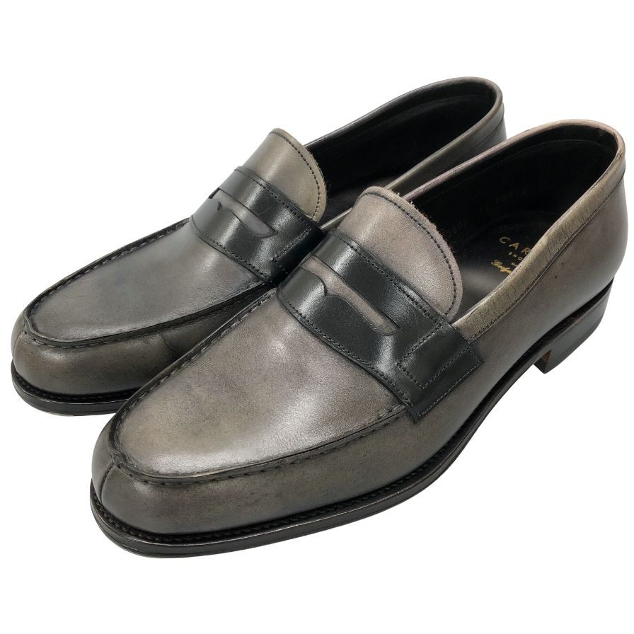 カルミナ コインローファー カーフ コンビ ブラック×グレー メンズ サイズ7.5 80578 CARMINA ローファー 約26.0cm【LA】【中古】
