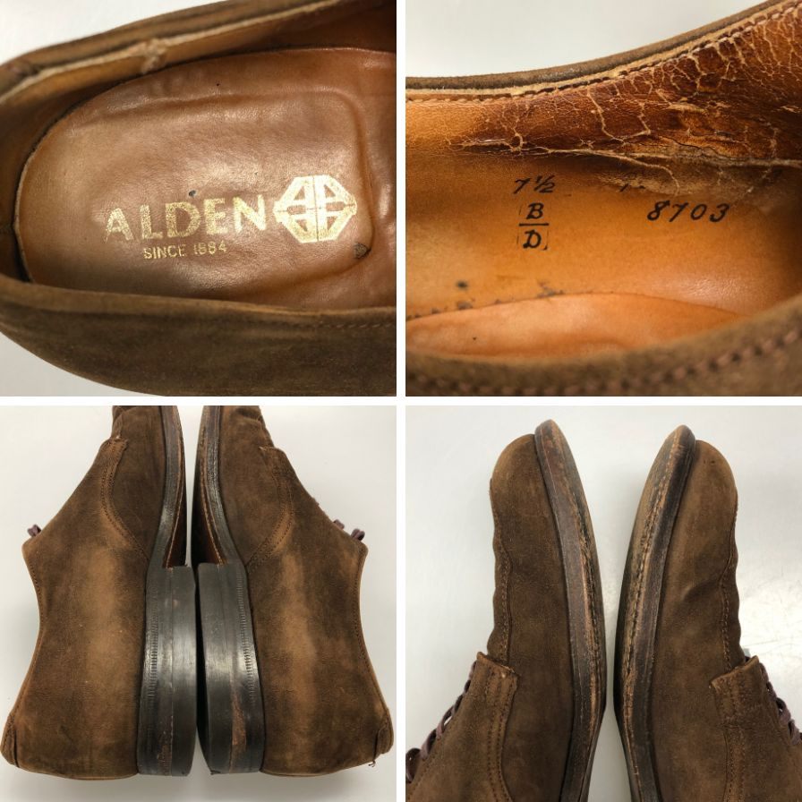 オールデン スエードシューズ 8703 Vチップ スエード 旧ロゴ ブラウン サイズUS7.5D メンズ ALDEN スエードシューズ 約25.5cm【LA】【中古】