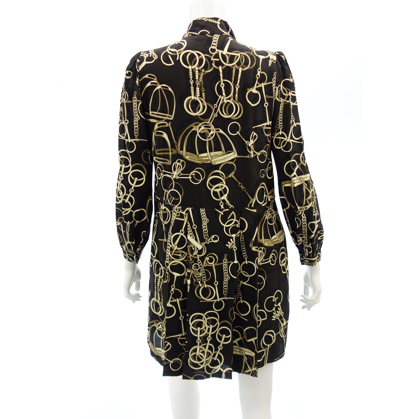 グッチ シルクワンピース 総柄 204027 40 レディース ブラック GUCCI【AFB35】【中古】