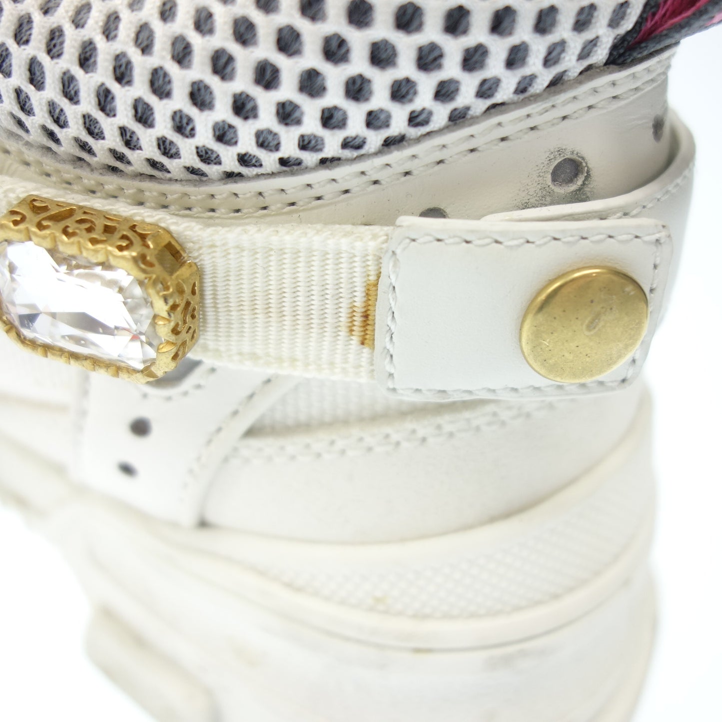 中古◆グッチ レースアップスニーカー フレッシュトレック ビジュー レディース ホワイト サイズ35 GUCCI【AFC33】