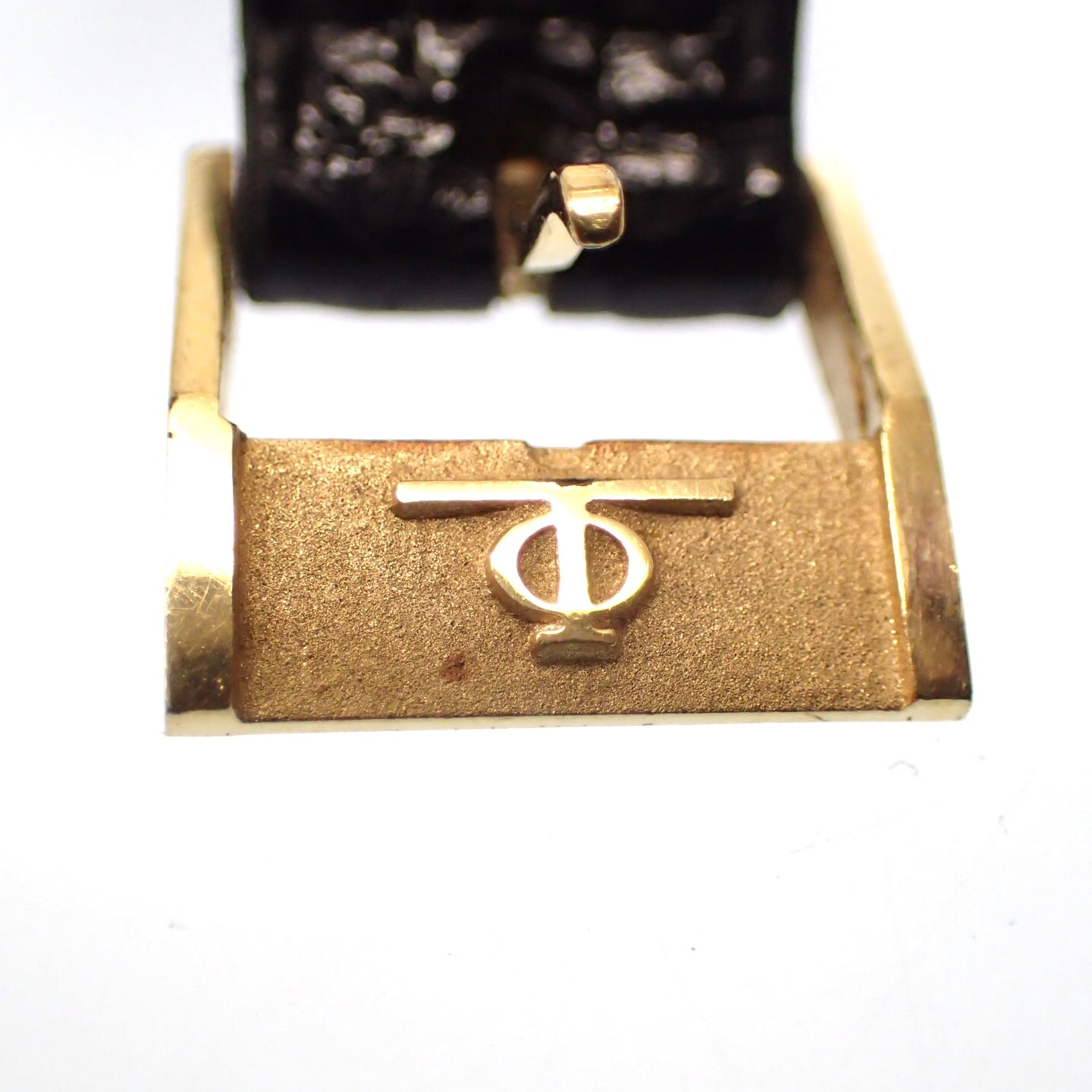 中古◆ボーム&メルシエ 腕時計 35110 手巻き 黒文字盤 レザーベルト BAUME&MERCIER【AFI12】