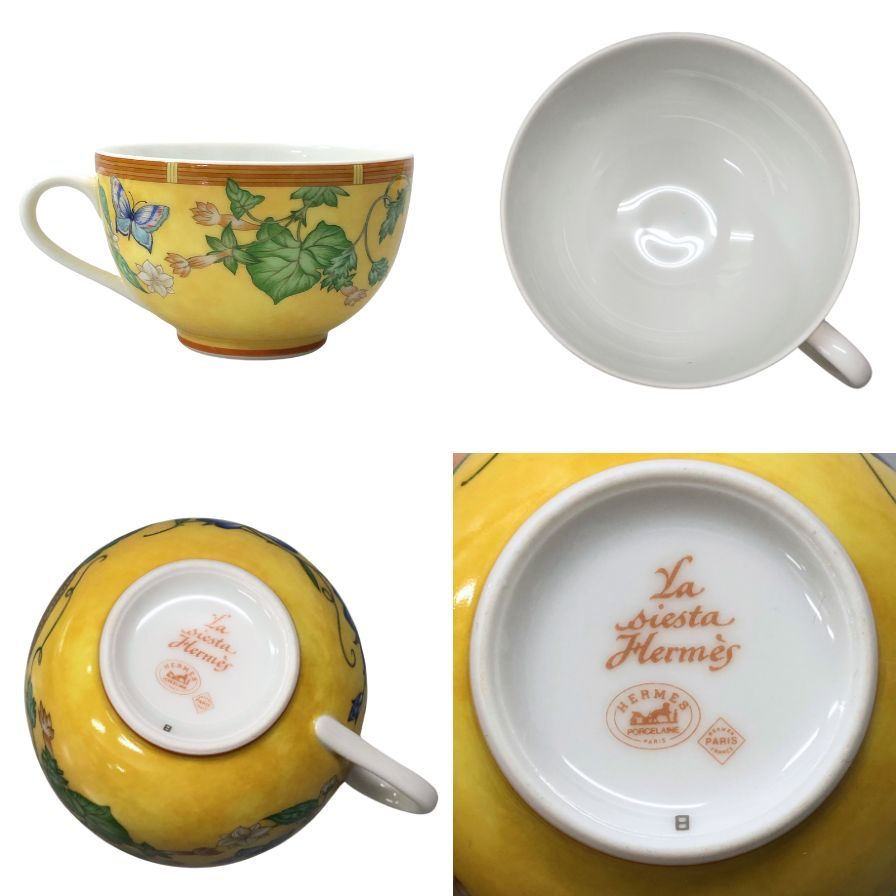 エルメス シエスタ カップ&ソーサー 花柄 イエロー系 2客セット HERMES【AFI28】【中古】