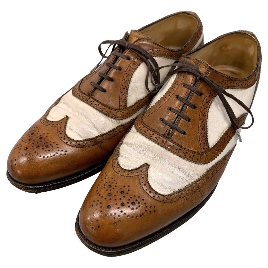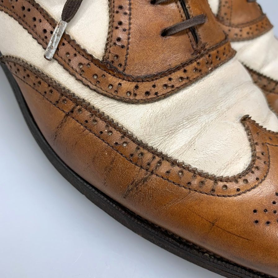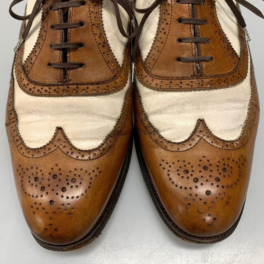 エドワードグリーン ビジネスシューズ 23557 ブラウン×ホワイト 8ハーフD メンズ 革靴 メダリオン フルブローグ EDWARD GREEN ビジネスシューズ 約26.5cm【LA】【中古】
