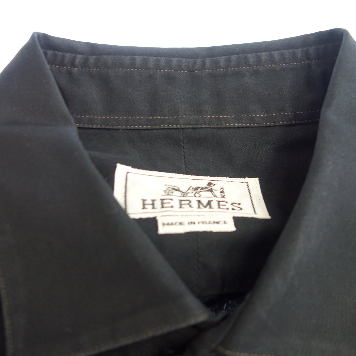 中古◆エルメス 長袖シャツ セリエボタン メンズ 黒 39 HERMES【AFB11】