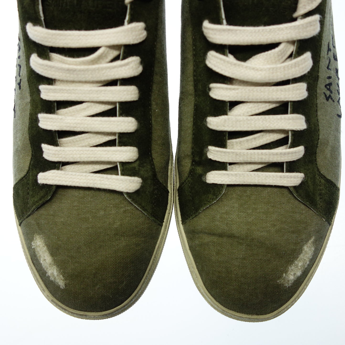 サンローラン レースアップスニーカー キャンバス ロゴ刺繡 メンズ 43 緑 SAINT LAURENT【AFD5】【中古】