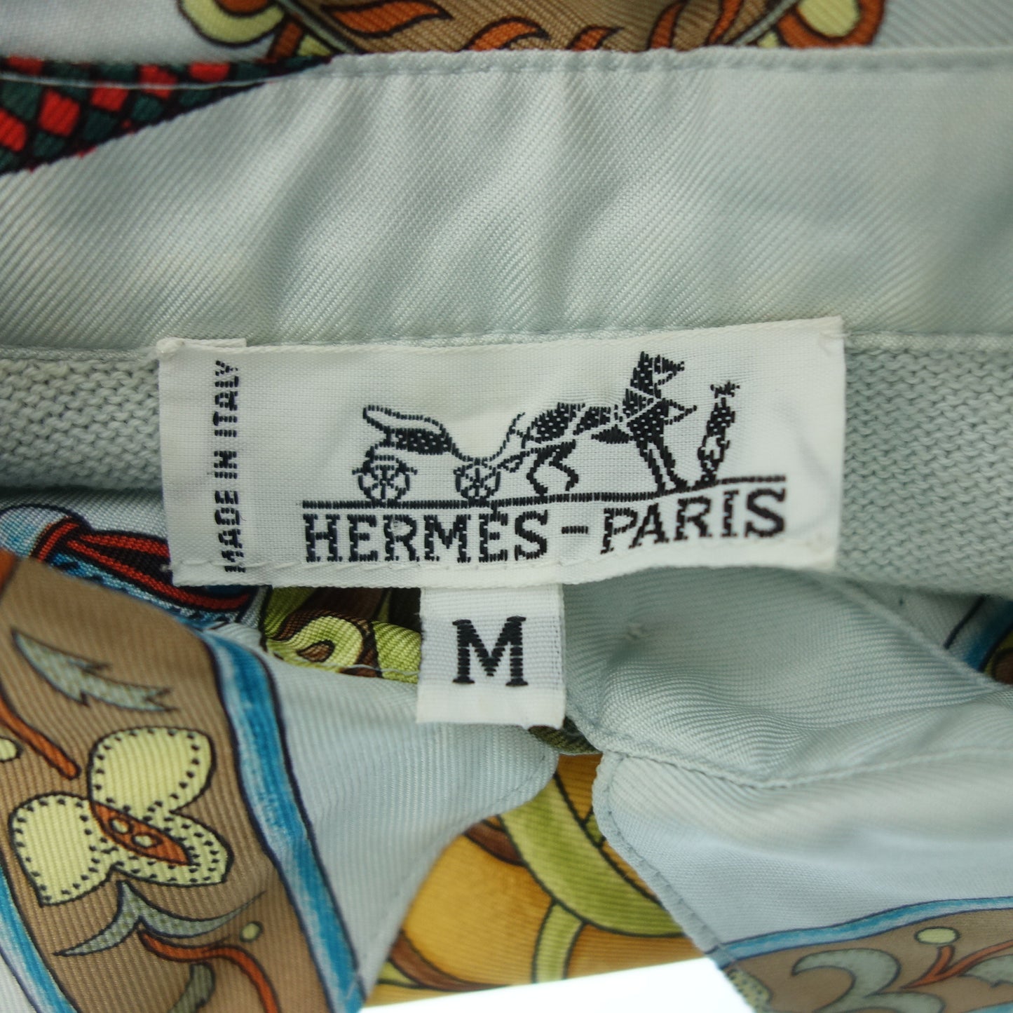 エルメス シルクシャツ スカーフ柄 ニット切替 レディース ライトブルー M HERMES【AFB46】【中古】