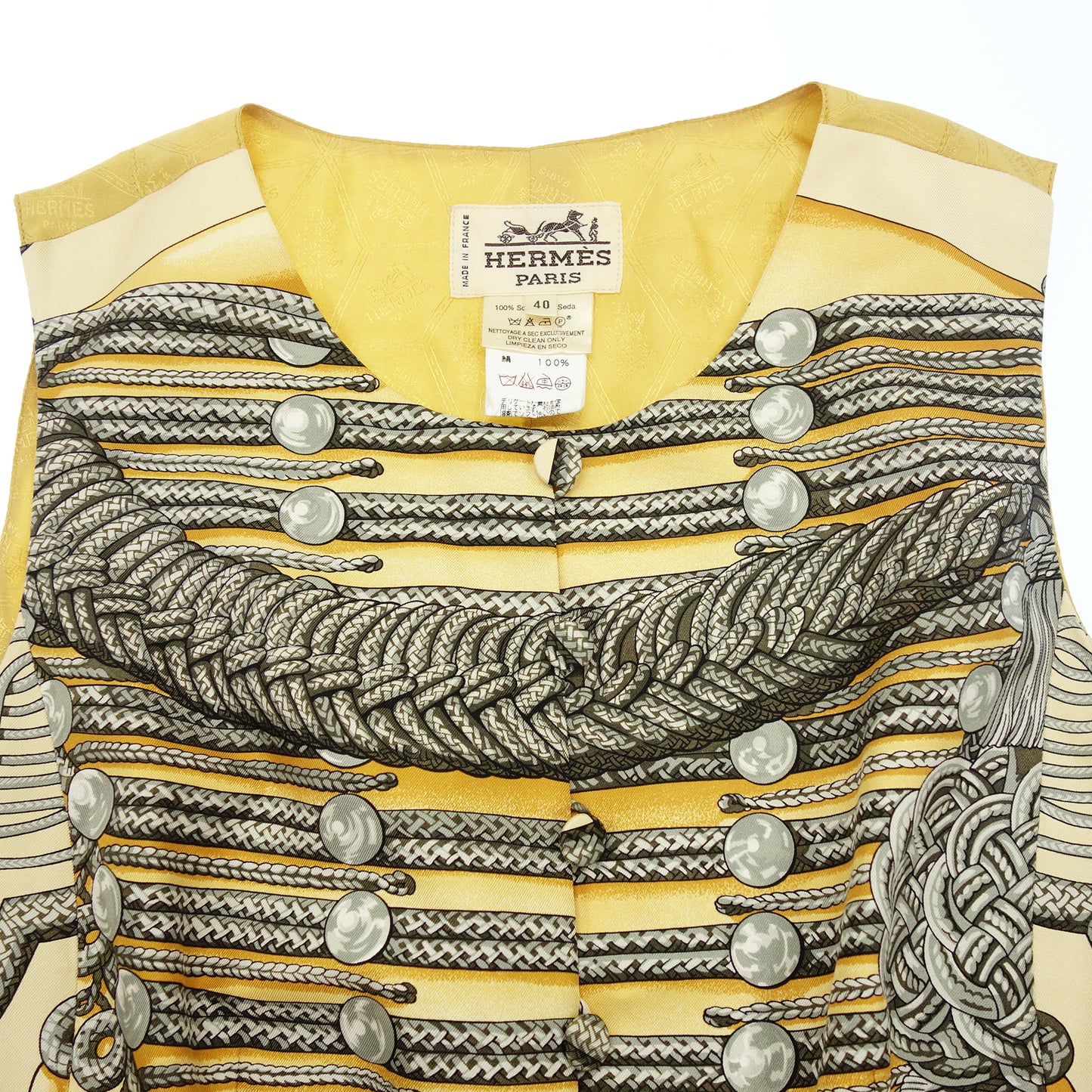 エルメス シルクベスト スカーフ柄 メンズ イエロー系 40 HERMES【AFB34】【中古】