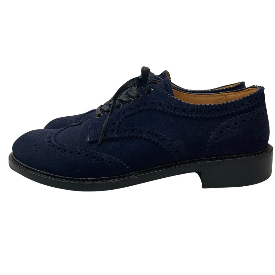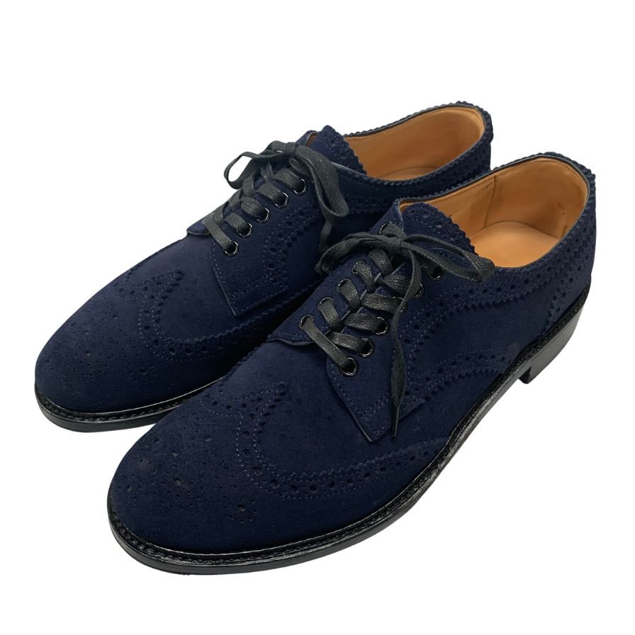 美品◆ヒロシツボウチ レザーシューズ ウイングチップ スエード HTO-DC09 メンズ サイズ6.5 ネイビー HIROSHI TSUBOUCHI【AFD2】
