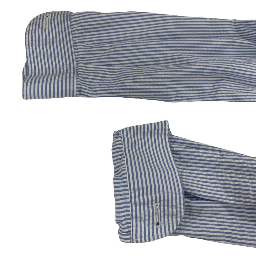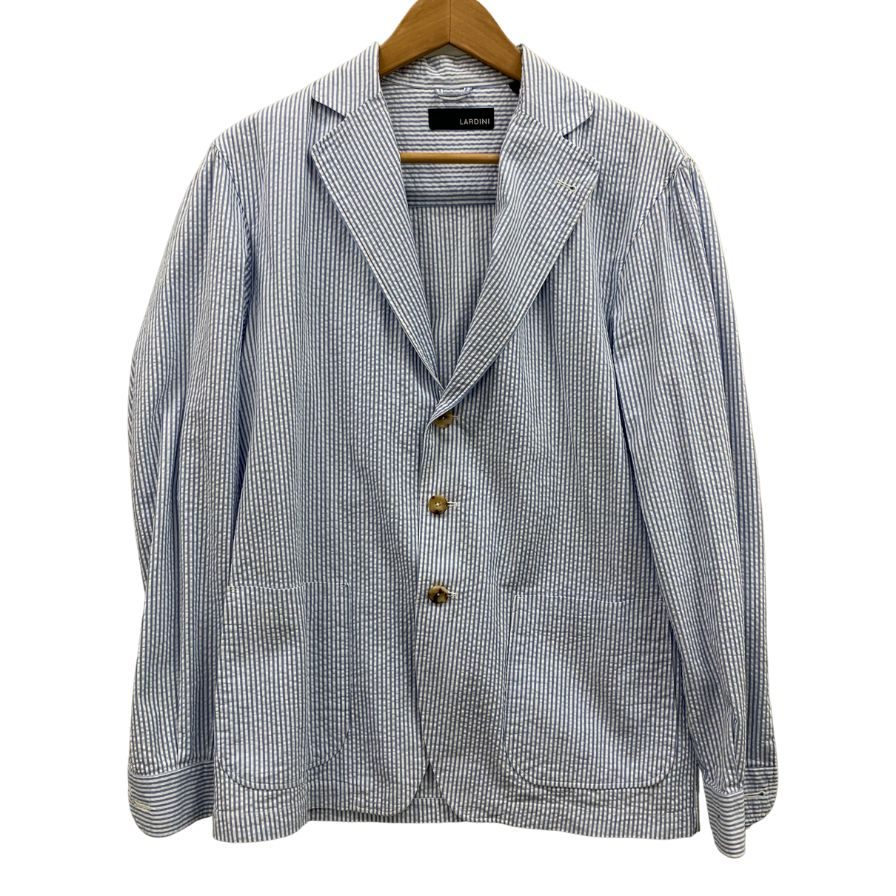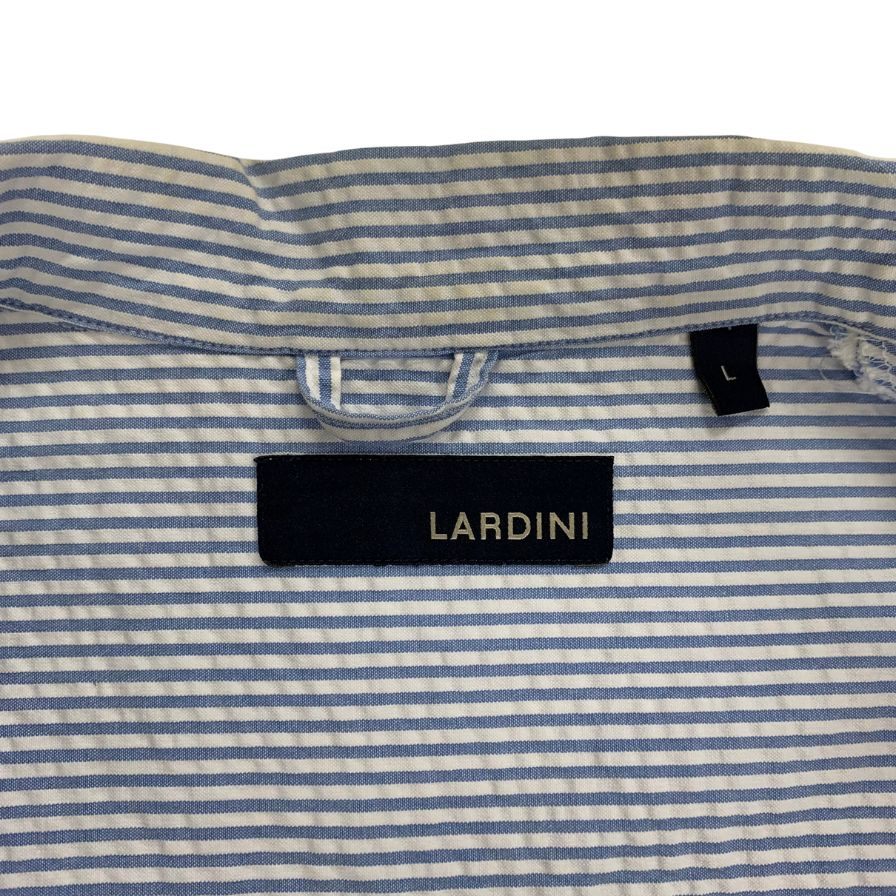 美品◆ラルディーニ シャツジャケット シアサッカー メンズ ホワイト×ブルー サイズL LARDINI 【AFB8】