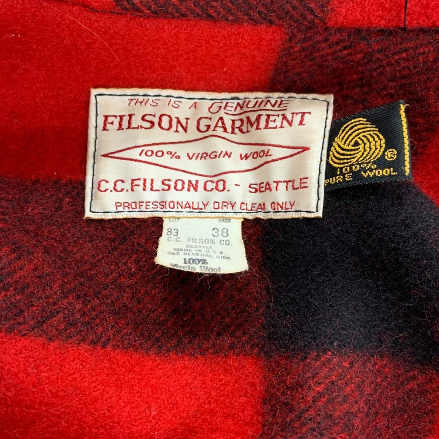 美品◆フィルソン ダブルマッキーノクルーザージャケット ウール チェック柄 レッド×ブラック メンズ サイズ38 ILSON 【AFA20】