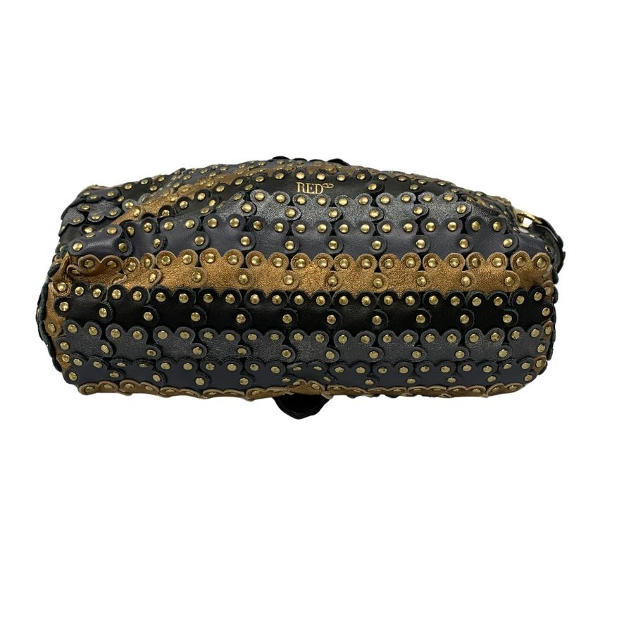 極美品◆レッド ヴァレンティノ ショルダーバッグ スタッズ フラワーパズル レザー 2WAY レディース ブラック系 RED VALENTINO【AFE12】