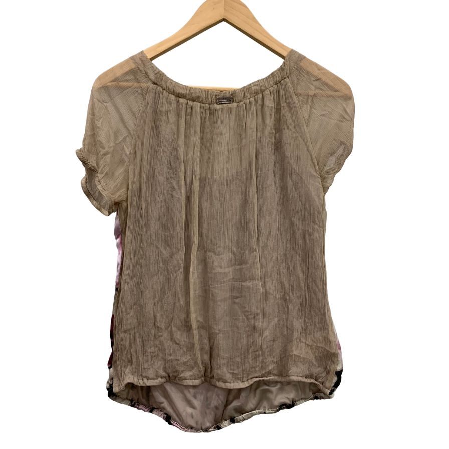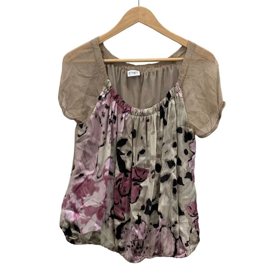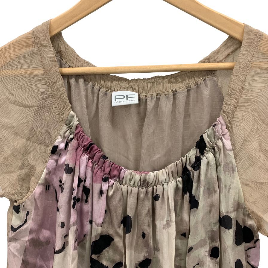 美品◆パオラ フラーニ トップス 半袖カットソー シルク サイズ42 ベージュ×パープル×ブラック レディース PAOLA FRANI 【AFB25】