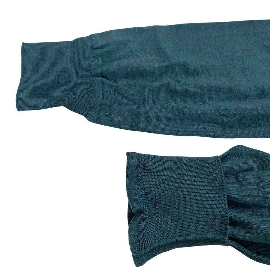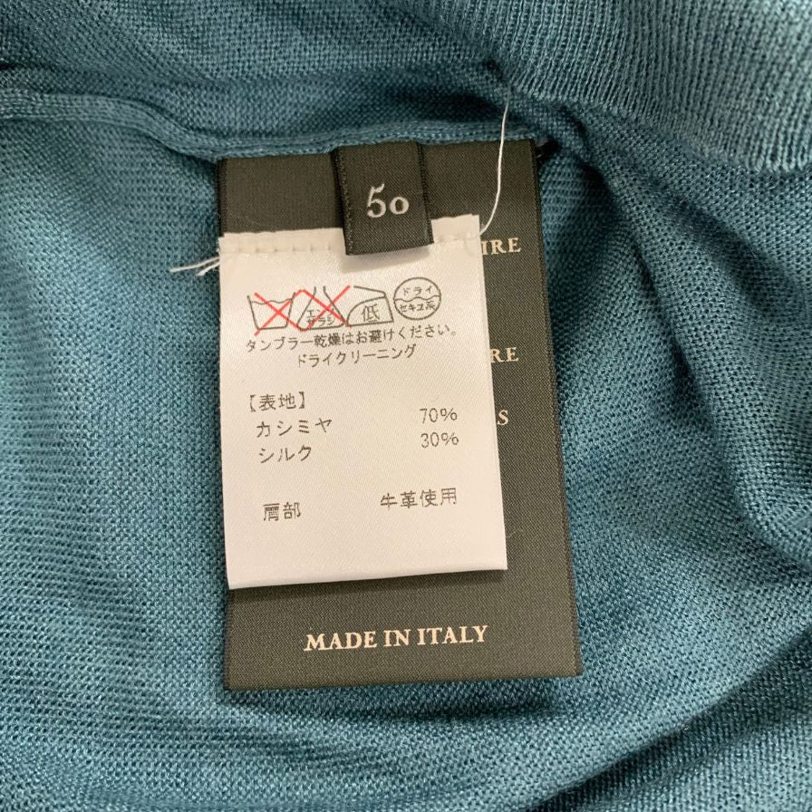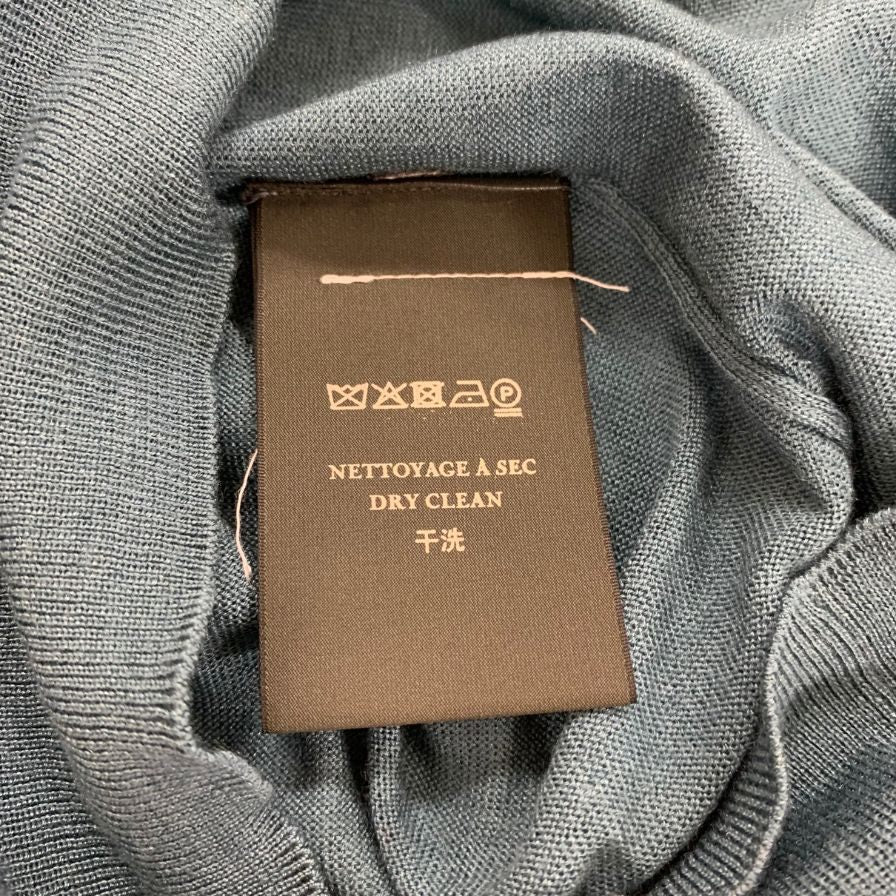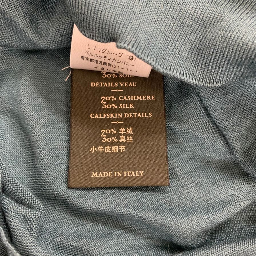 美品◆ベルルッティ ニットセーター Vネック 長袖 レザーパイピング シルク カシミヤ混 メンズ サイズ50 ブルー系 Berluti 【AFB12】