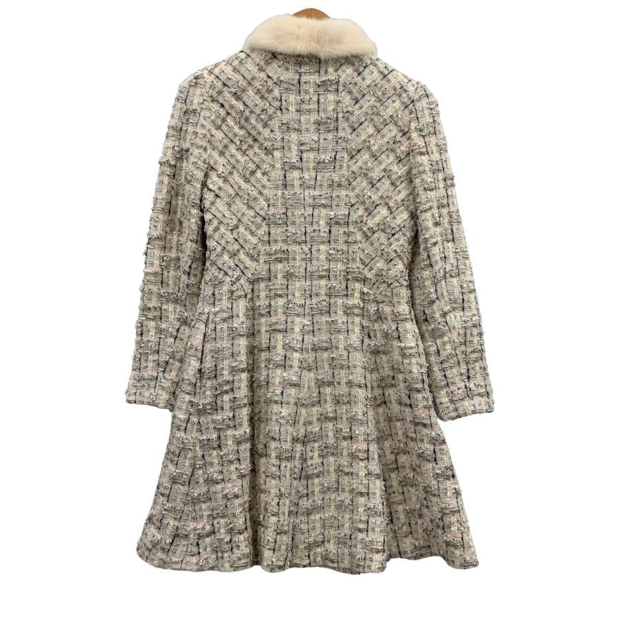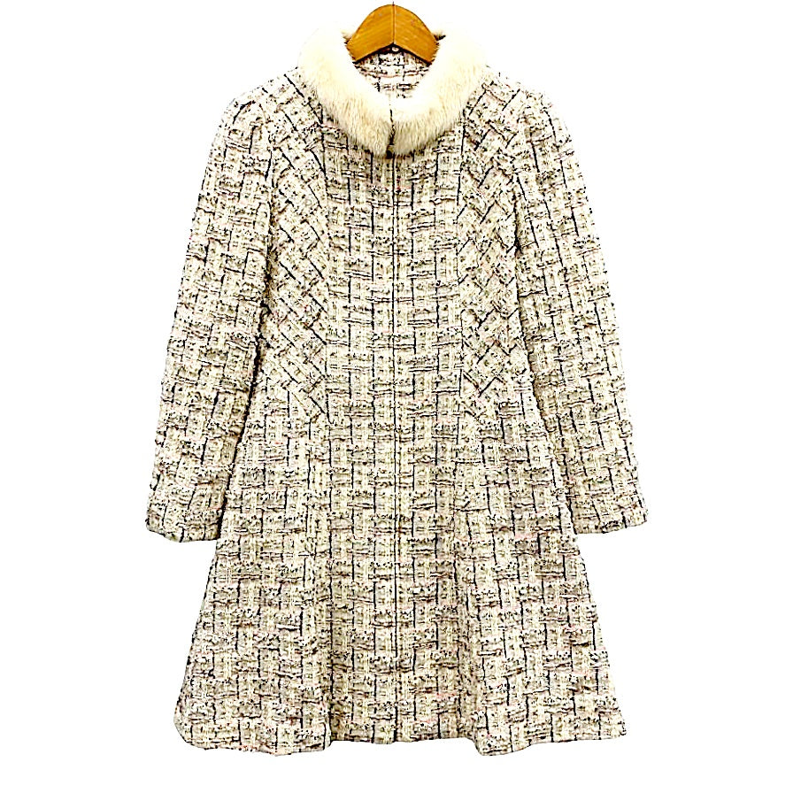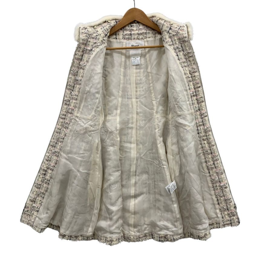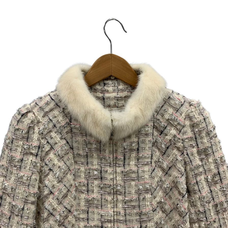美品◆ルネ コート 6548010A ミンク ファー ツイード チェック アイボリー レディース サイズ36 Rene 【AFF22】