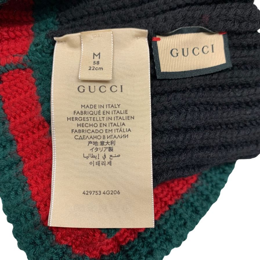 グッチ ビーニー シェリーライン ウール ミドルゲージ 編み込み ニット帽 ニット キャップ ブラック ユニセックス GUCCI