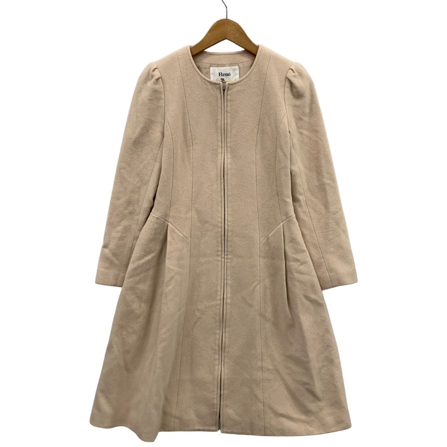 中古◆ルネ コート 6638010A ノーカラー ウール アンゴラ アイボリー レディース サイズ34 Rene 【AFF22】