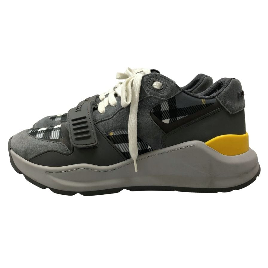 バーバリー スニーカー バーバリーチェック ファブリック ラバー スエード サイズ42 グレー系 BURBERRY 約26.5cm【AFD15】