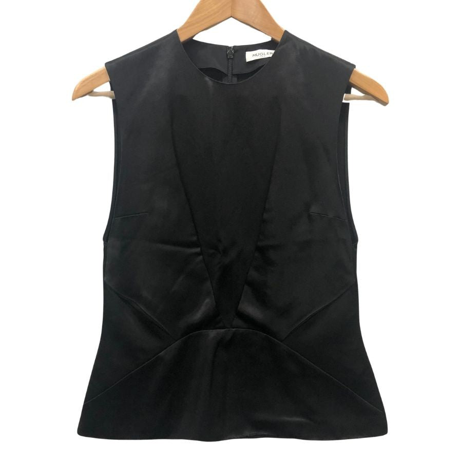 美品◆ミューグレー ブラウス ノースリーブ ビスコース シルク サイズ36 レディース ブラック MUGLER 【AFB9】