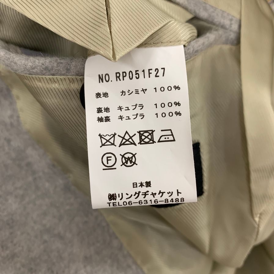 美品◆リングジャケット テーラードジャケット 段返り3B シングル カシミア グレー メンズ RING JACKET 【AFA8】