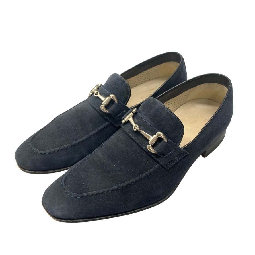 美品◆フェランテ レザーシューズ ビットローファー スエード メンズ ネイビー サイズ6 FERRANTE【AFC4】